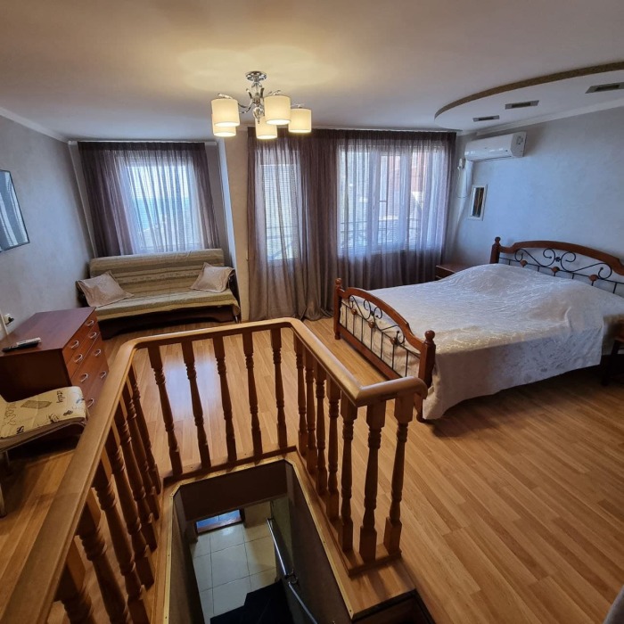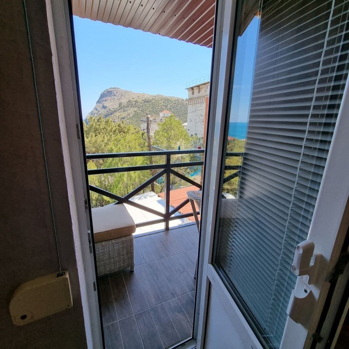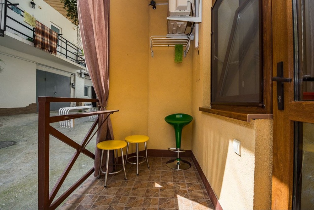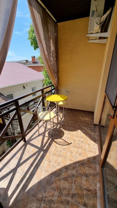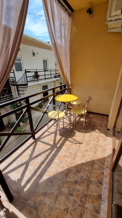 Номер 2/2 - индивидуальный номер со всем необходимым для проживания: комната - студия, кухня, полный набор посуды, холодильник, кондиционер, TV кабельное, Wi-fi, белье, сан узел с душевой (горячая/холодная вода постоянно), полотенца, просторные балконы с видом на тихую улочку без машин.