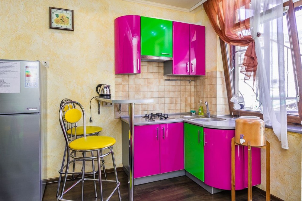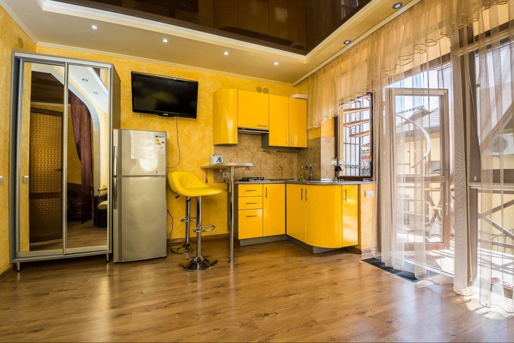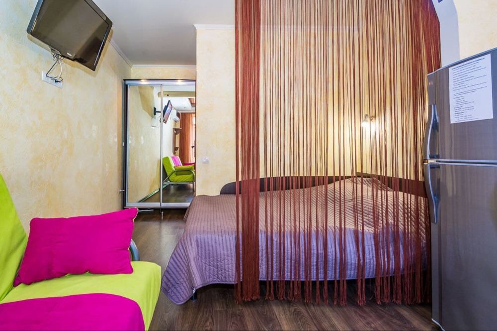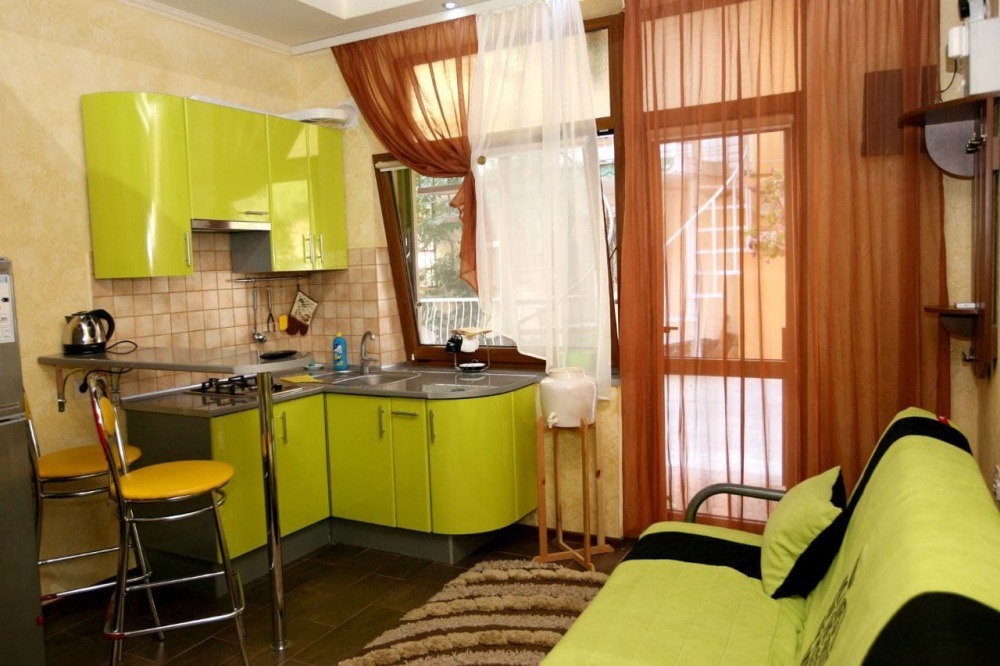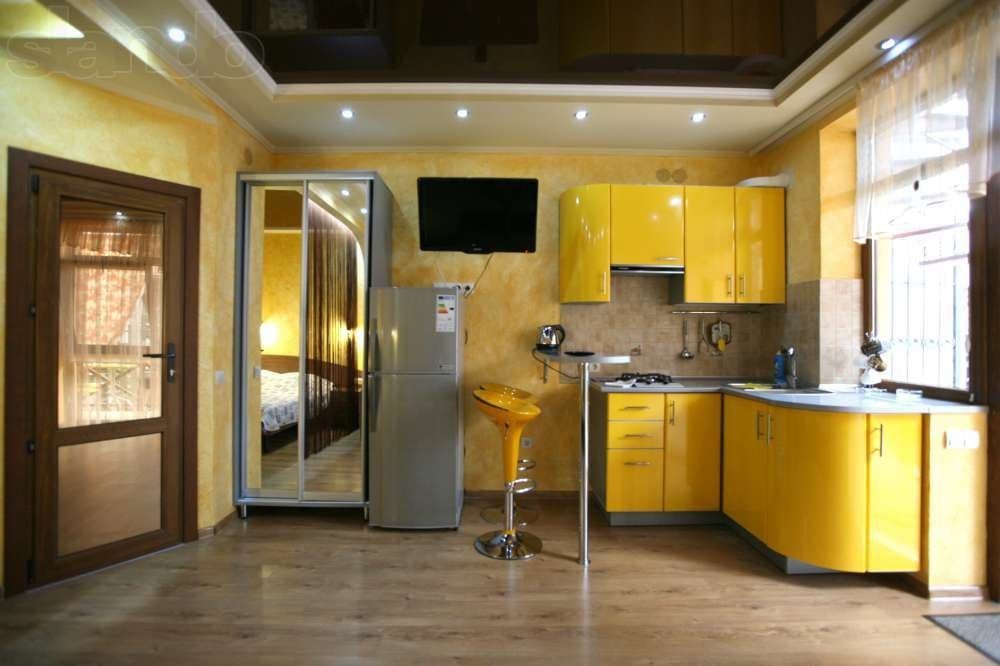 Номер 1/1 - индивидуальный номер со всем необходимым для проживания: комната - студия, кухня, полный набор посуды, холодильник, кондиционер, TV кабельное, Wi-fi, белье, сан узел с душевой (горячая/холодная вода постоянно), полотенца, просторные балконы с видом на тихую улочку без машин.