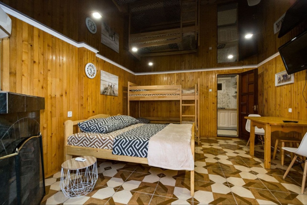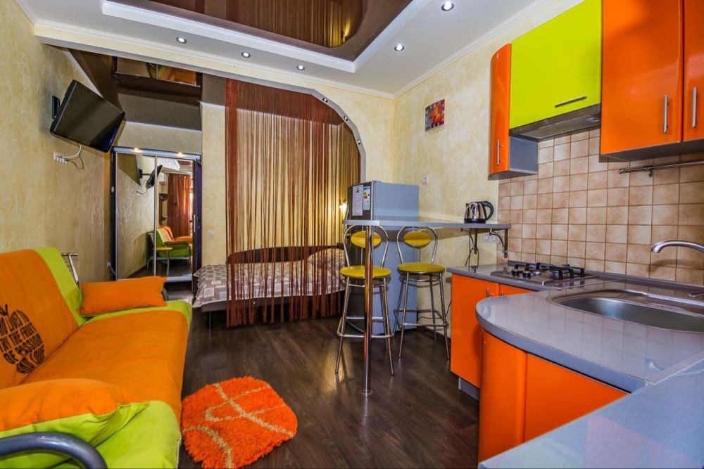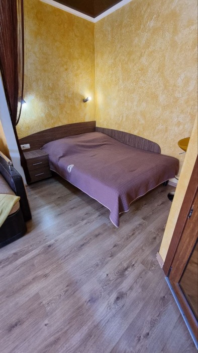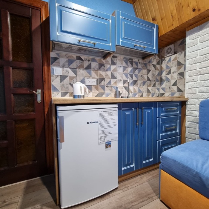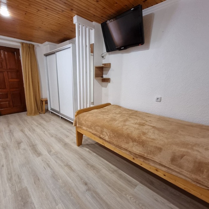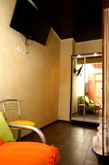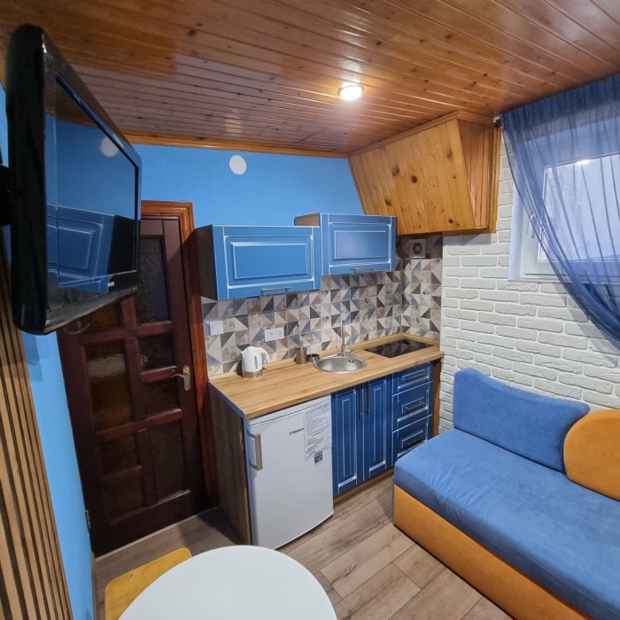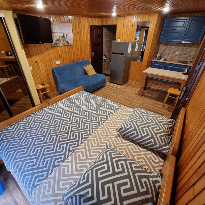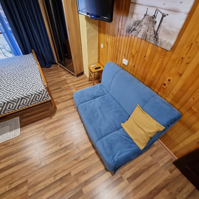 Наши номера - современные, чистые, уютные. В номере: двуспальная кровать, двуспальный диван, кондиционер (очищенный по нормам безопасности для здоровья), ТВ - кабельное, интернет Wi-Fi, оборудованная кухня со всей необходимой посудой для самостоятельного приготовления еды, вместительный холодильник с морозильной камерой, санузел с душевой (горячая/холодная вода постоянно); роллеты на окнах (непросвечивающие).