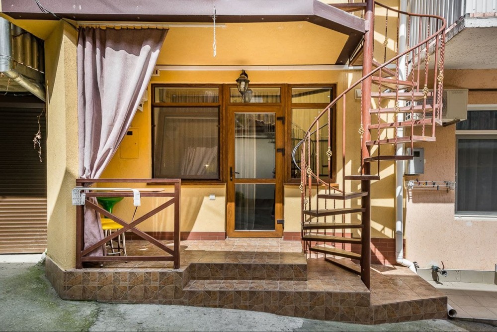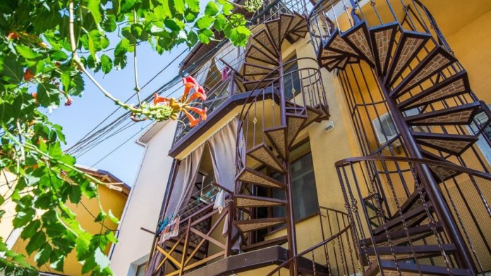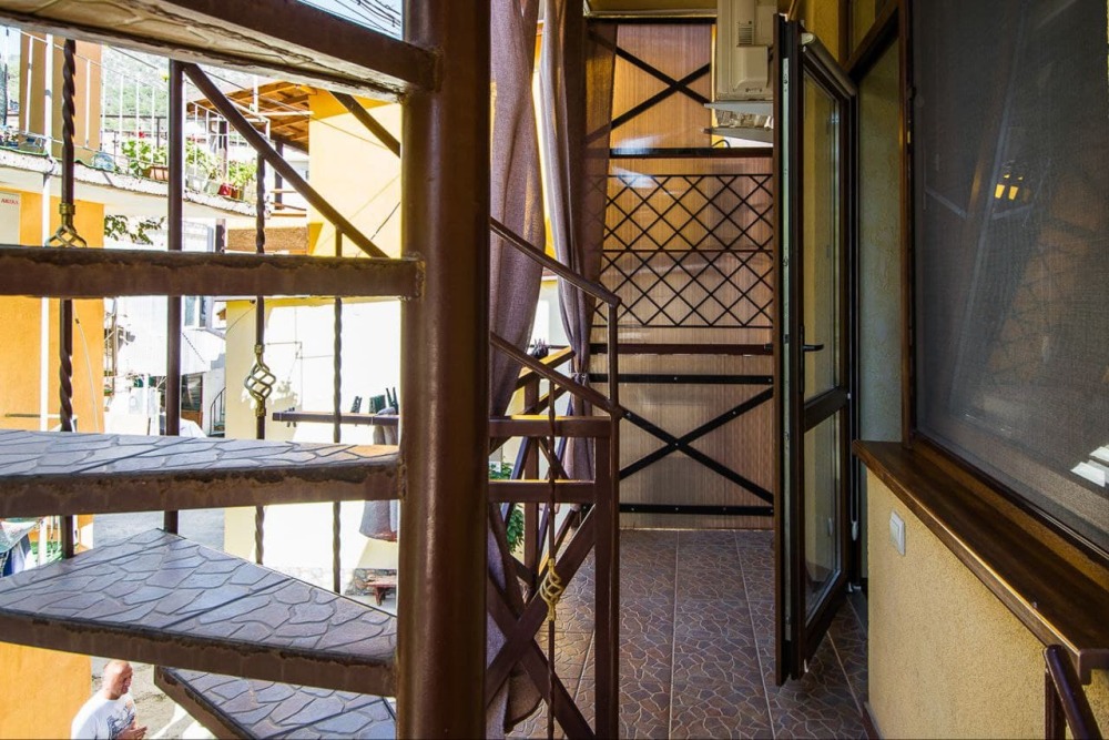Вход в номер по винтовой лестнице. Номер без балкона.
