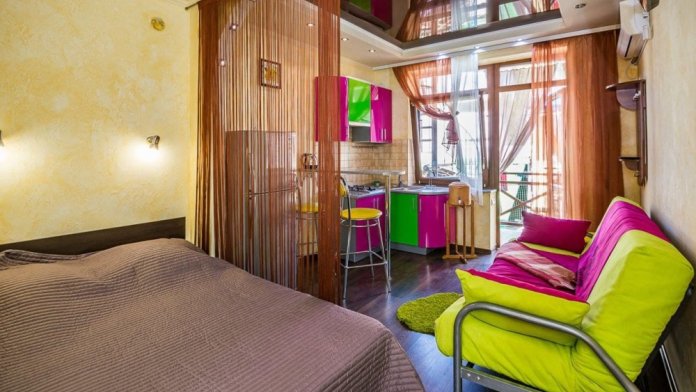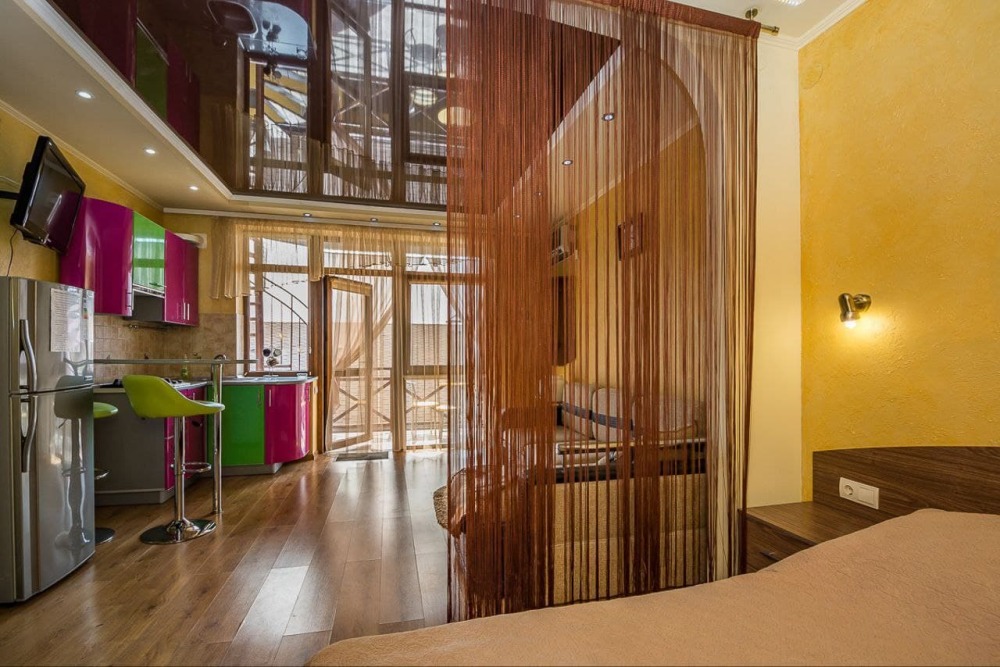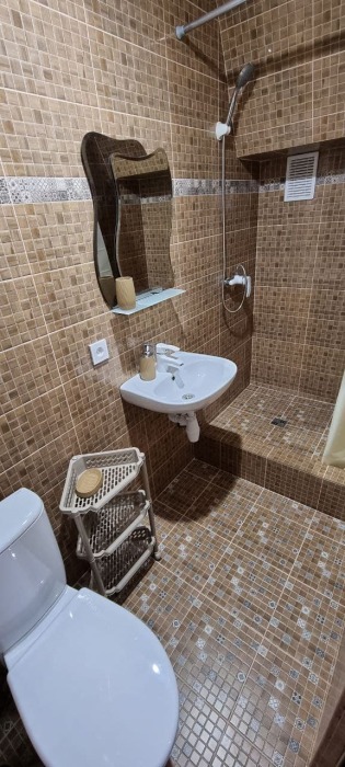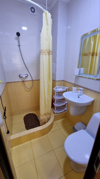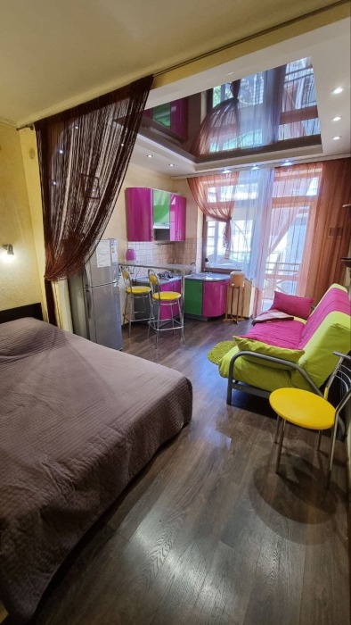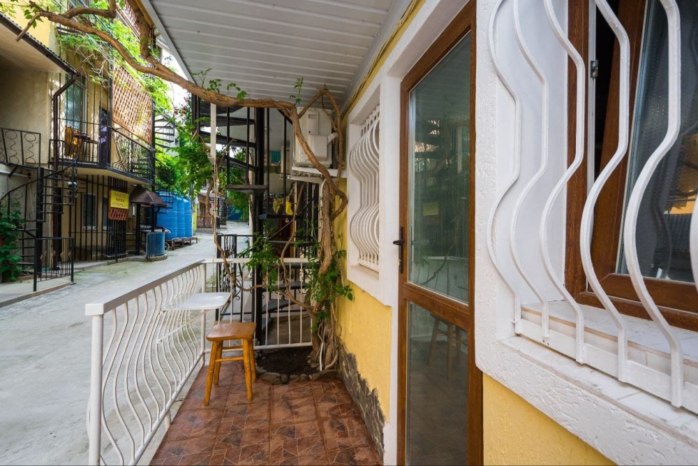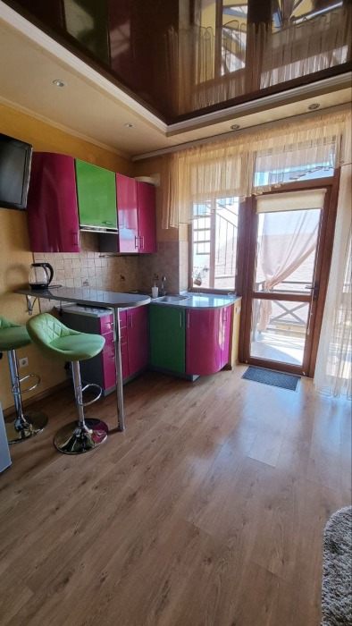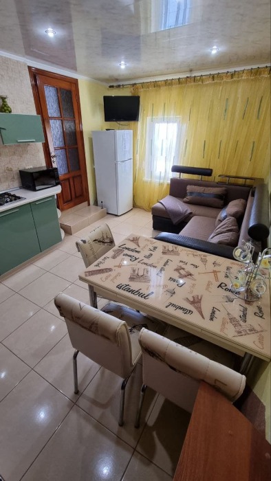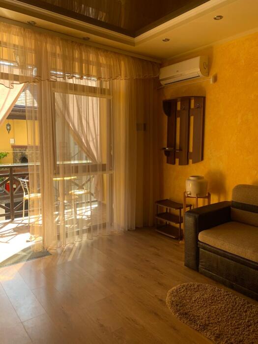 Номер 1/3 - индивидуальный номер со всем необходимым для проживания: комната - студия, кухня, полный набор посуды, холодильник, кондиционер, TV кабельное, Wi-fi, белье, сан узел с душевой (горячая/холодная вода постоянно), полотенца, просторные балконы с видом на тихую улочку без машин.