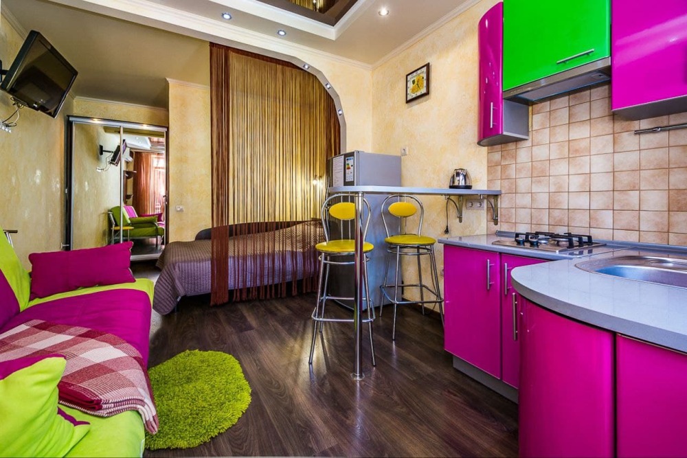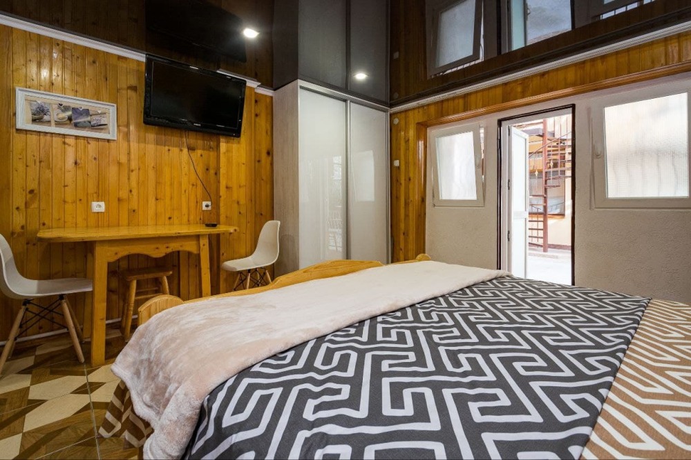 Номер 3/1 - индивидуальный номер со всем необходимым для проживания: комната - студия, кухня, полный набор посуды, холодильник, кондиционер, TV кабельное, Wi-fi, белье, сан узел с душевой (горячая/холодная вода постоянно), полотенца, просторные балконы с видом на тихую улочку без машин.