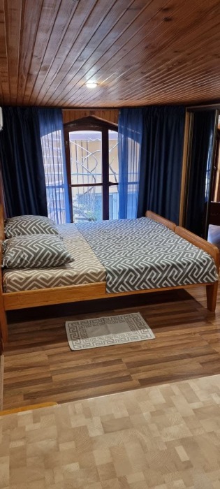 Номер 3/2 - индивидуальный номер со всем необходимым для проживания: комната - студия, кухня, полный набор посуды, холодильник, кондиционер, TV кабельное, Wi-fi, белье, сан узел с душевой (горячая/холодная вода постоянно), полотенца, просторные балконы с видом на тихую улочку без машин.