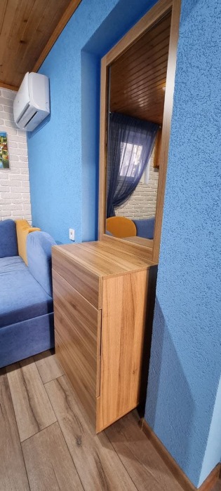Номер 2/1 - индивидуальный номер со всем необходимым для проживания: комната - студия, кухня, полный набор посуды, холодильник, кондиционер, TV кабельное, Wi-fi, белье, сан узел с душевой (горячая/холодная вода постоянно), полотенца, просторные балконы с видом на тихую улочку без машин.