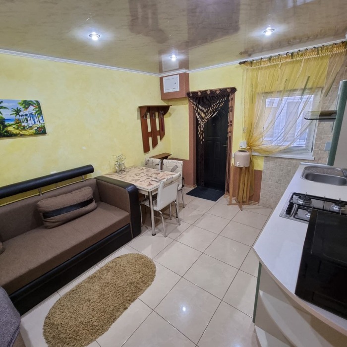 Номер 1/2 - индивидуальный номер со всем необходимым для проживания: комната - студия, кухня, полный набор посуды, холодильник, кондиционер, TV кабельное, Wi-fi, белье, сан узел с душевой (горячая/холодная вода постоянно), полотенца, просторные балконы с видом на тихую улочку без машин.