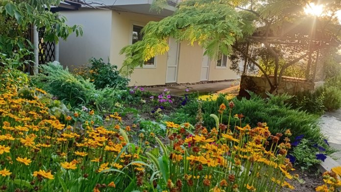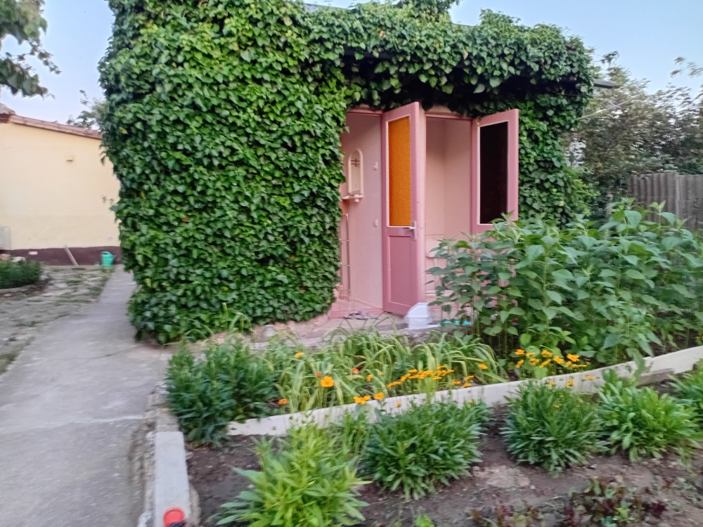 Уютный зеленый тихий, спокойный дворик гостевого дома «Отдых» в Оленевке приглашает на отдых.
