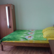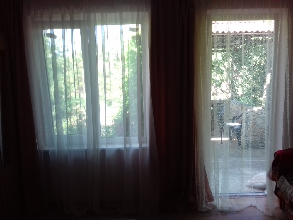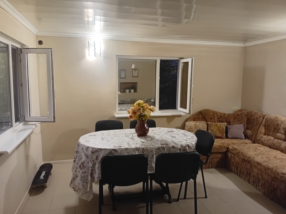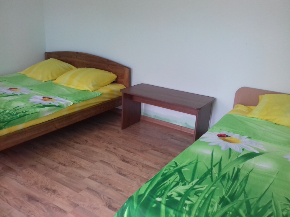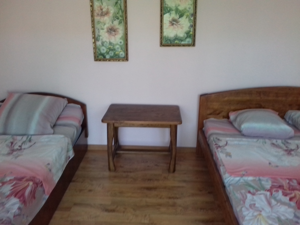 Два номера 3-местных (спальные места 2+1) и один номер 4-местный (спальные места 2+2, однокомнатный). Чистые, светлые номера с мягкими удобными кроватями и матрасами, для крепкого, полноценного сна. Шкаф с плечиками, полочками, зеркалом. С кондиционером. Душ и туалет общие на три номера, с напольным унитазом, горячей водой, рядом с номерами.
