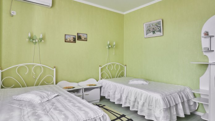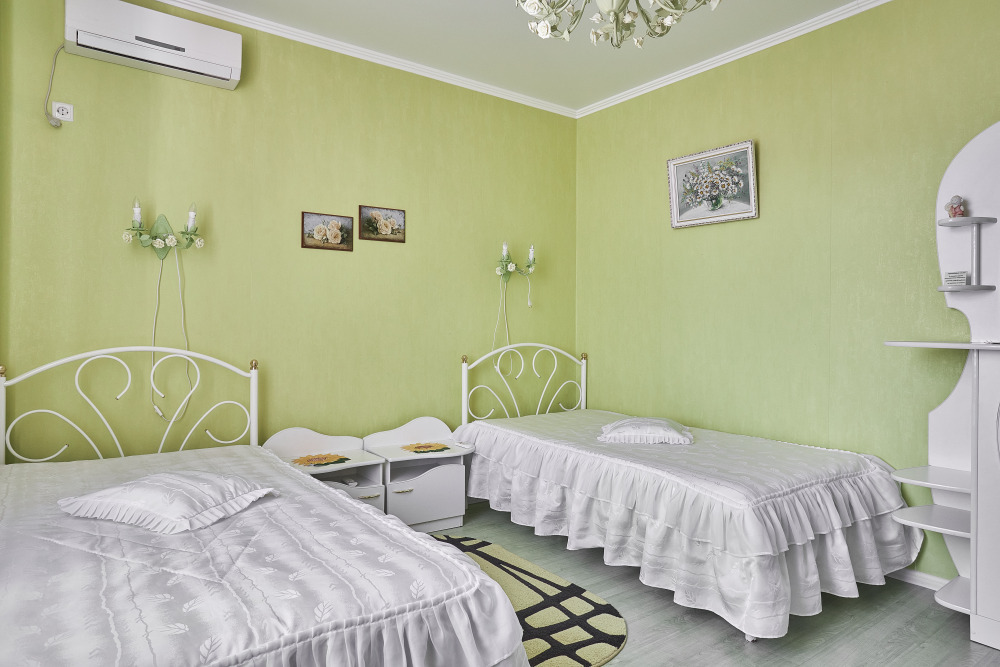 Однокомнатный номер с двумя односпальными кроватями идеально подойдет для проживания двух гостей. В номере кондиционер, телевизор, холодильник, стол, набор посуды и всё, что нужно для комфортного отдыха.
