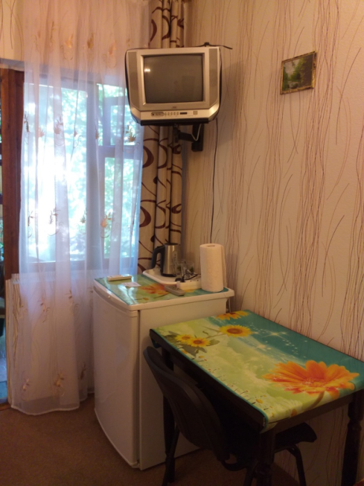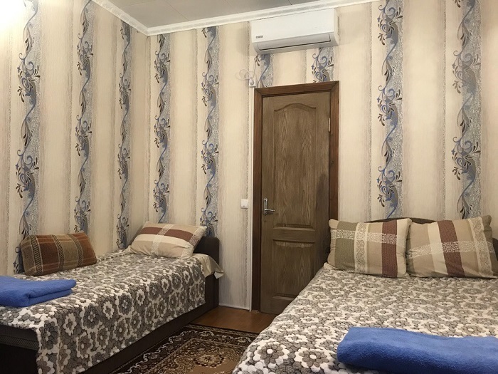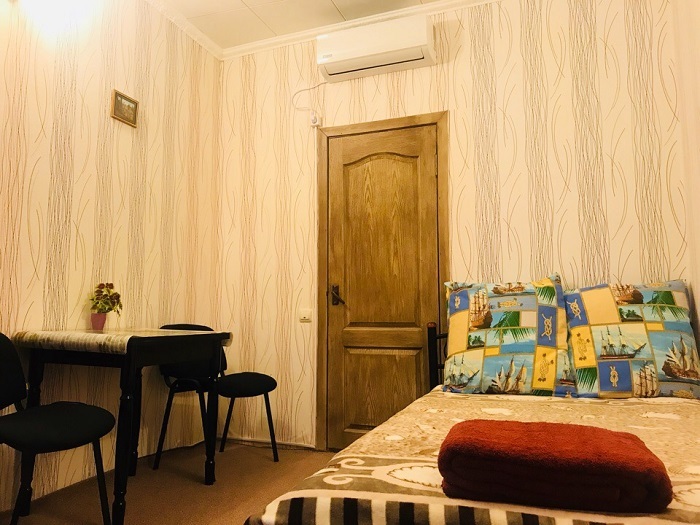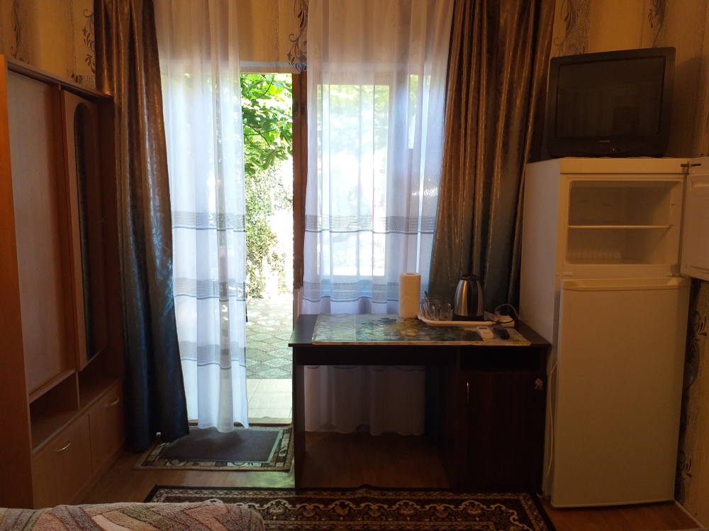 Гостевой дом предлагает для отдыха 5 номеров для размещения от 1 до 4 человек. В номерах есть всё необходимое для комфортного проживания: кондиционер, кровать, шкаф, телевизор, холодильник, электрочайник, санузел.