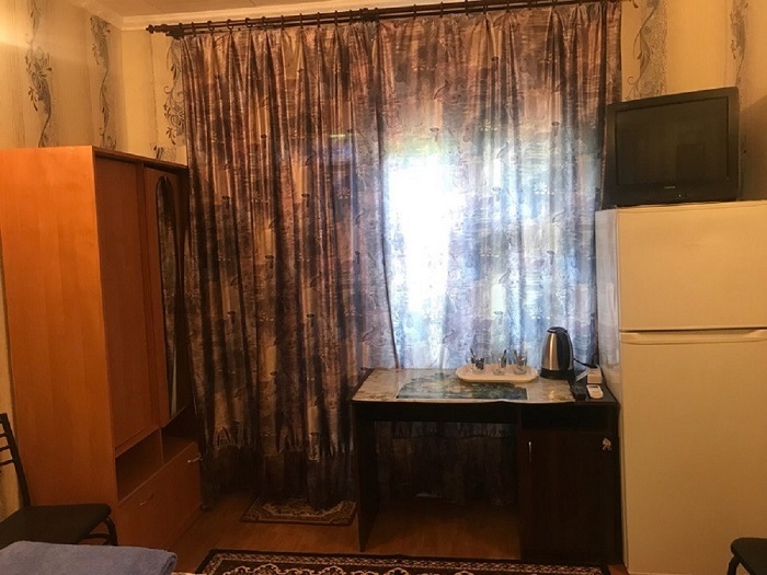В номере есть всё необходимое для комфортного проживания: кровать двухспальная (ширина 1,60), шкаф, холодильник, телевизор, столик, электрочайник, вентилятор, санузел.