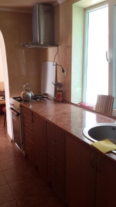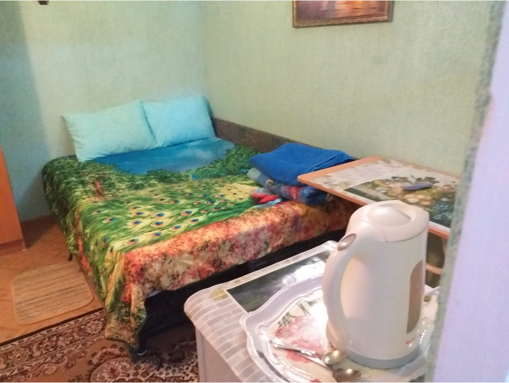 Это уютный номер, с собственной кухней, для размещения от 2 до 4 гостей. В номере есть всё необходимое для комфортного проживания: кондиционер, кровать, диван, дополнительная односпальная кровать, шкаф, телевизор, холодильник, гладильные принадлежности, санузел. Уборка номера по просьбе.