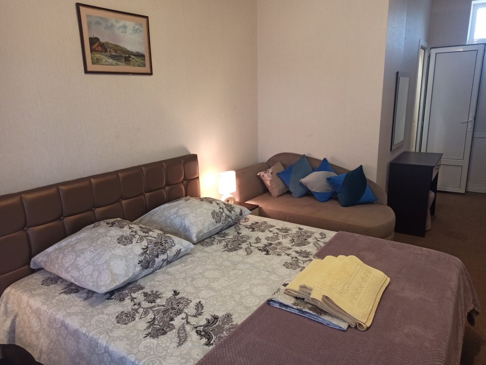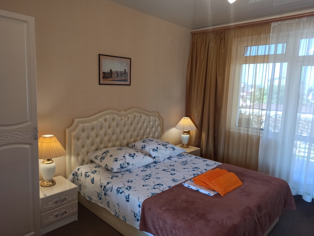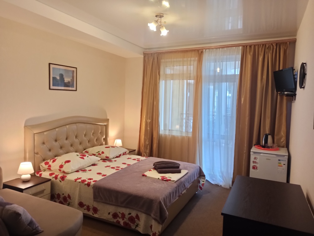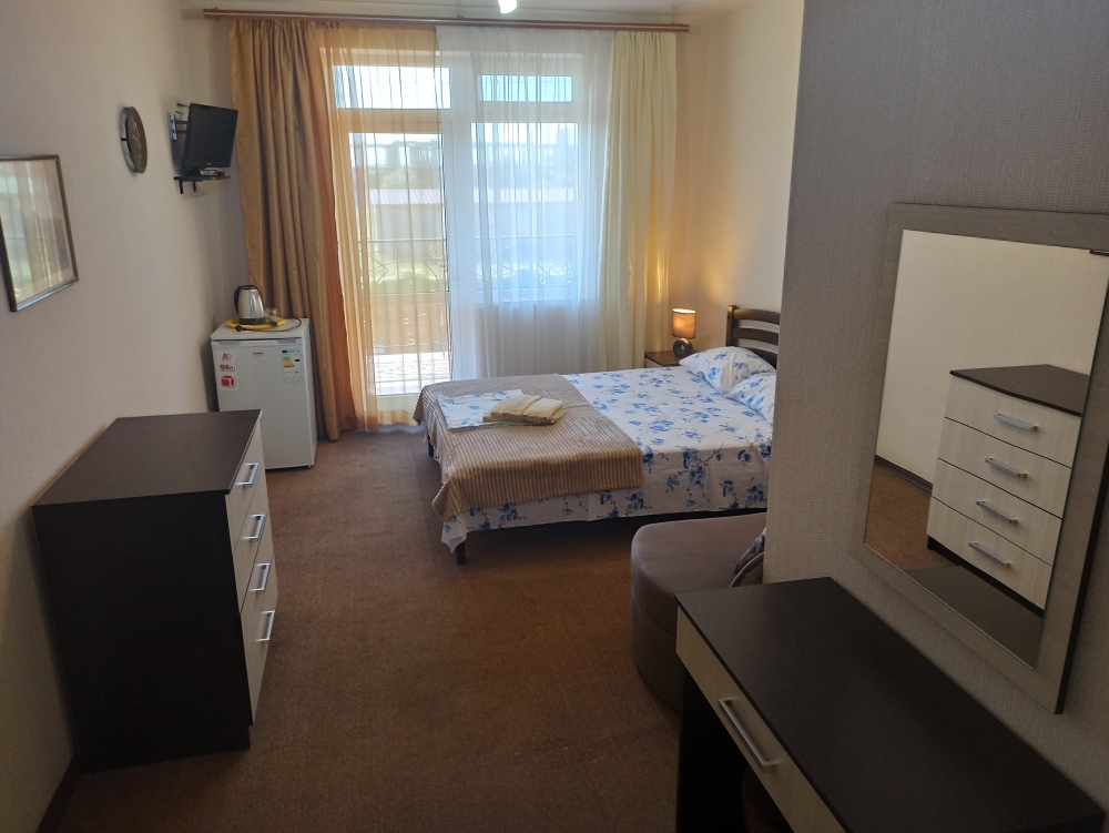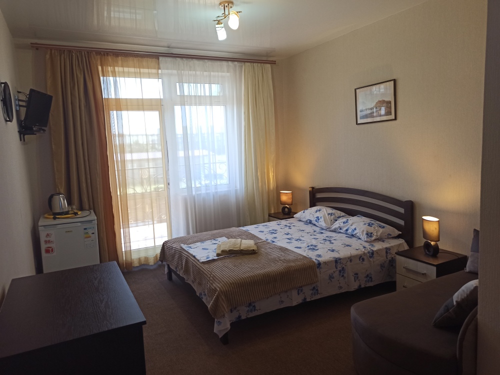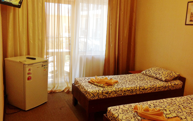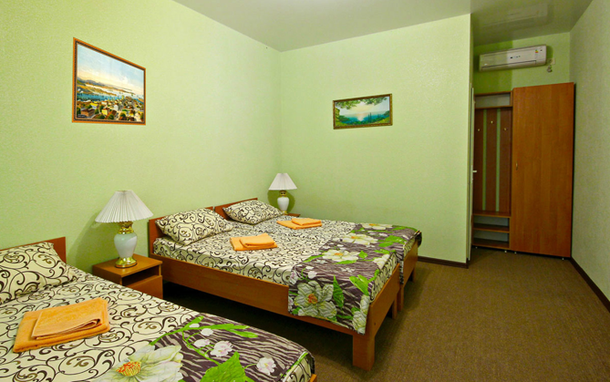 К Вашим услугам 23 оборудованный для комфортного проживания современный номер со всеми удобствами. В каждом номере: балкон, необходимая мебель, полные комплекты постельных принадлежностей, кондиционер, санузел с душем и туалетом, холодная и горячая вода постоянно, холодильник, телевизор,электрочайник,фен