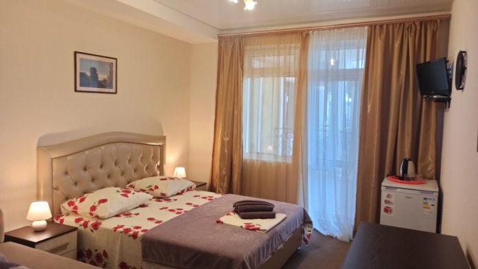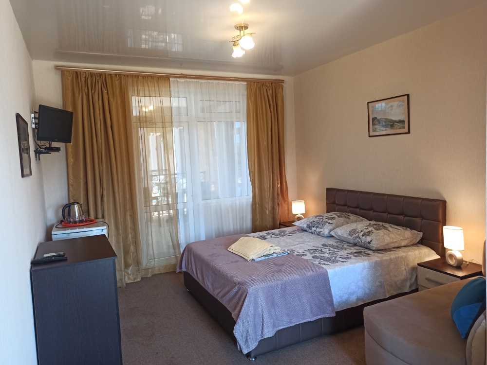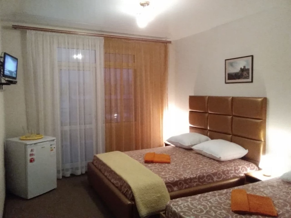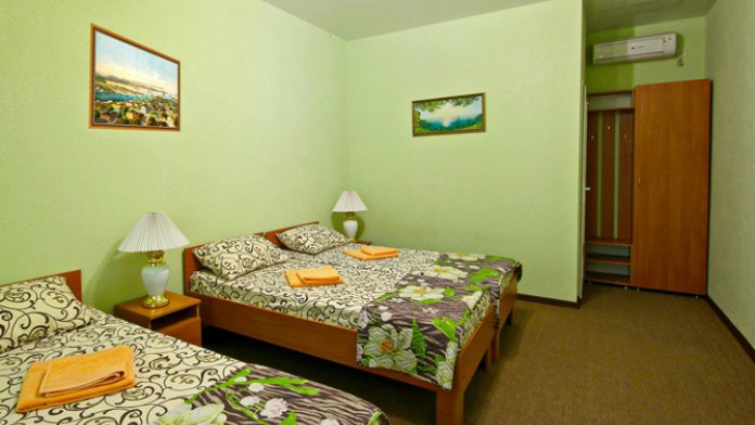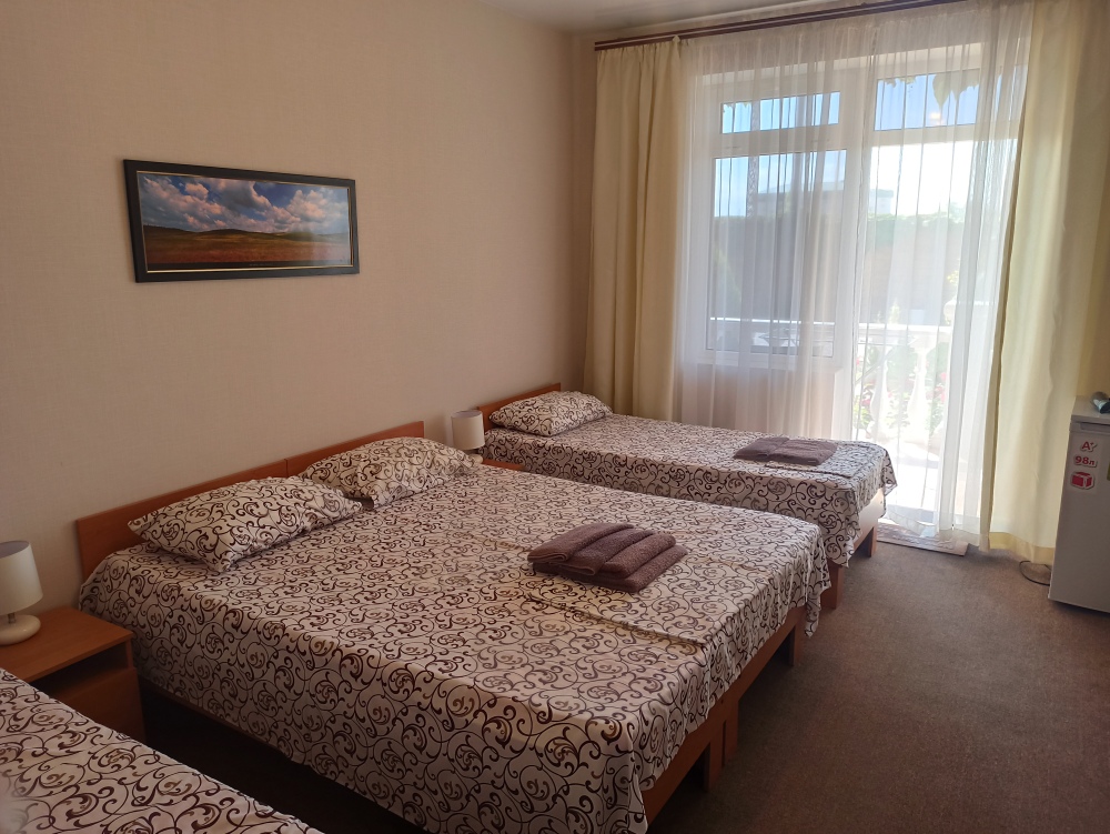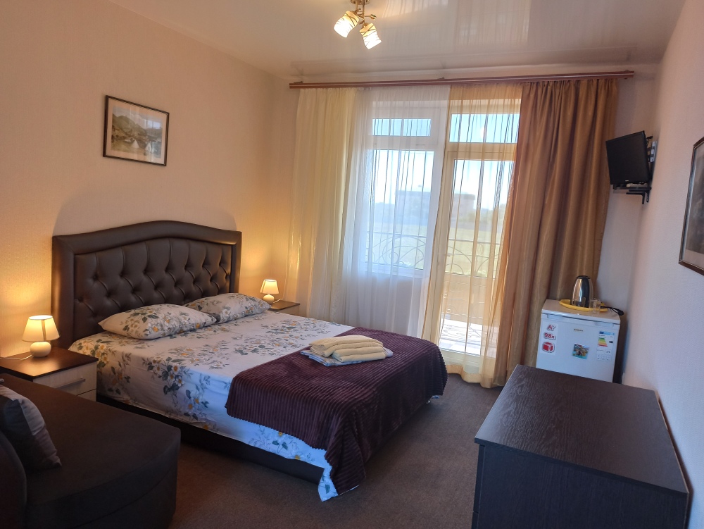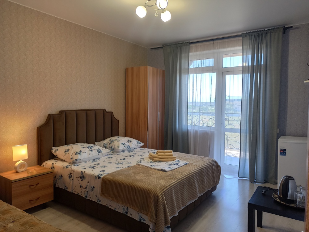 К Вашим услугам 23 оборудованный для комфортного проживания современный номер со всеми удобствами. В каждом номере: балкон, необходимая мебель, полные комплекты постельных принадлежностей, кондиционер, санузел с душем и туалетом, холодная и горячая вода постоянно, холодильник, телевизор,электрочайник,фен