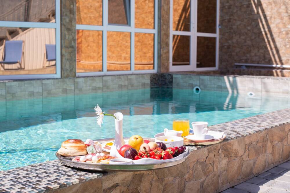 На территории есть бассейн под открытым небом с подогревом (не работает с ноября по середину апреля). Гостям предлагаются завтраки/обеды/ужины в своей столовой (работает с середины апреля и по конец октября).