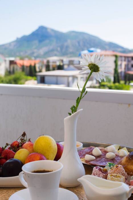 • В апартаментах своя собственная индивидуальная кухня. На территории есть кафе с комплексным питанием в 2025 г столовая будет работать с 01.06 и до 30.09.