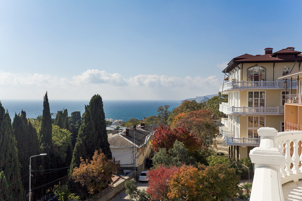 Однокомнатная квартира-студия с потрясающим видом на бескрайнее море и парк на четвертом этаже напротив санатория имени Боброва.
