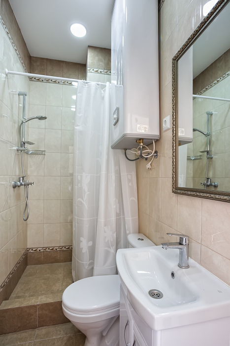 В квартире двухспальная кровать и одна еврораскладушка, можно разместить три человека.