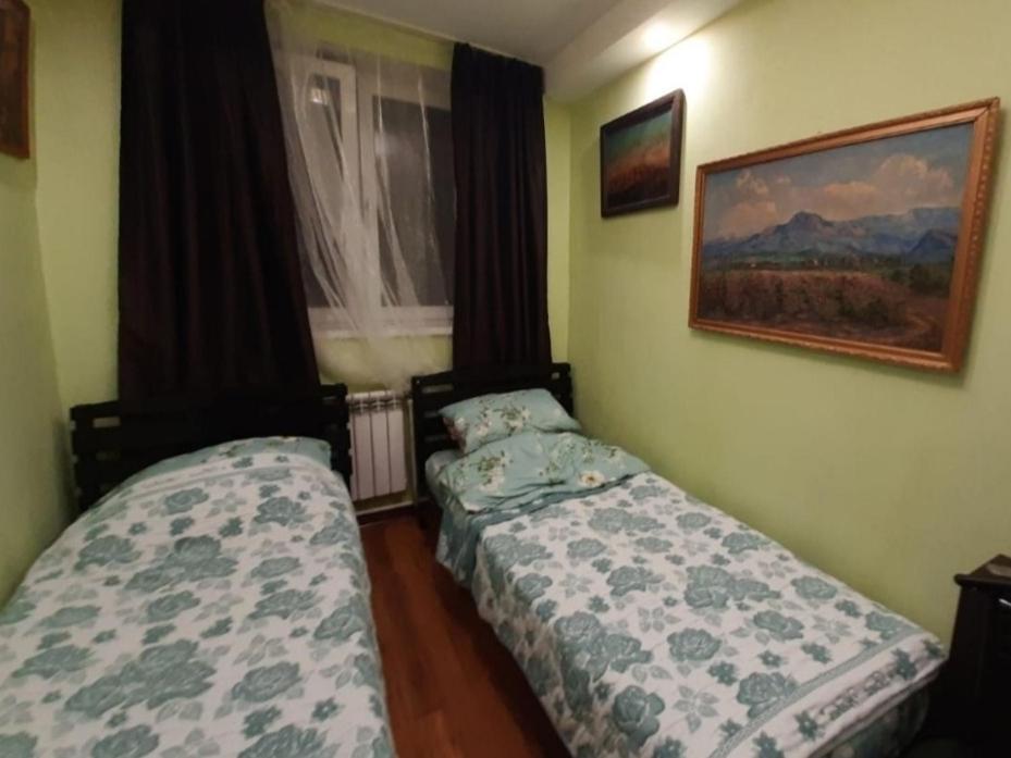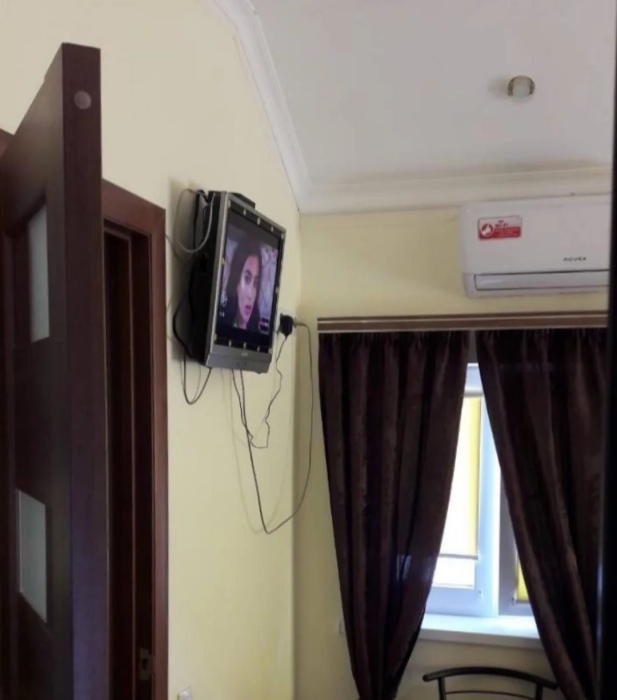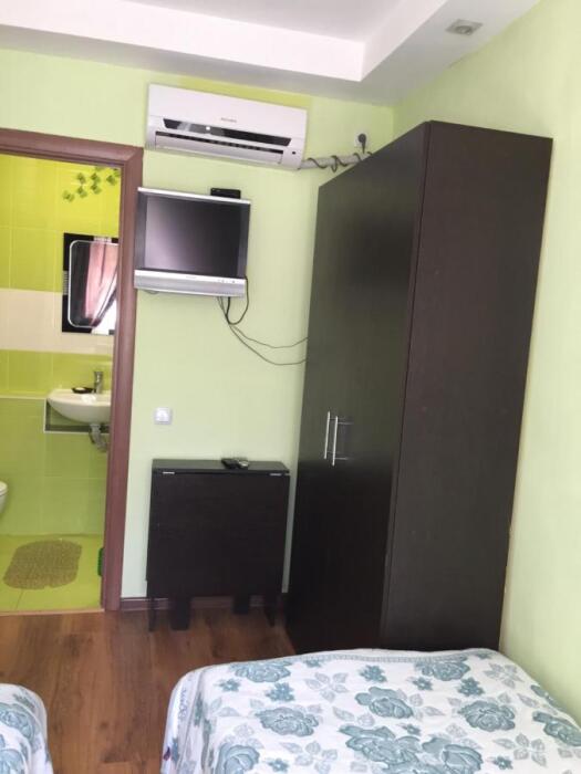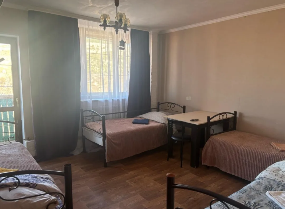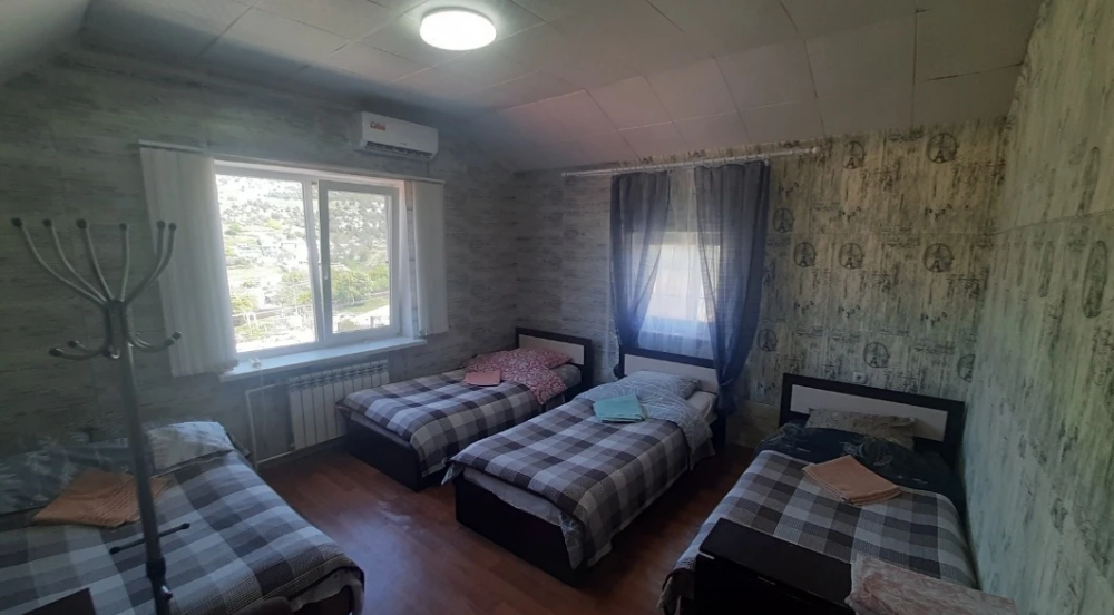 Номер находится на третьем этаже . В номере есть кондиционер , телевизор , чайник , чашки , тарелки , по желанию можно поставить маленький холодильник , душ , туалет , вид из окна на горы и ущелье .