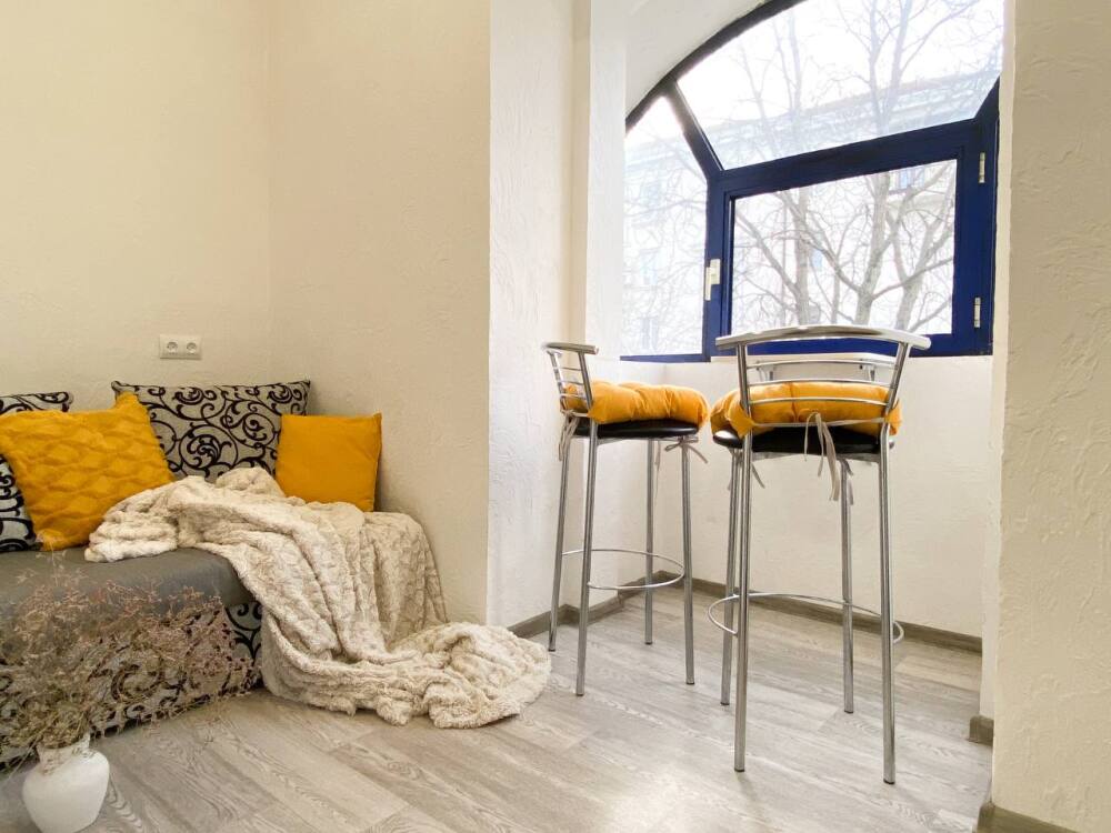 4. Изюминкой квартиры является большой балкон, где уютно встретить рассвет и проводить закат с видом на главную улицу города. Вид на вечерний город воистину потрясающий. Когда включается иллюминация и подсветка, получается особая магия Севастополя.