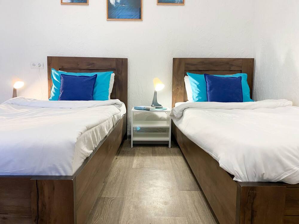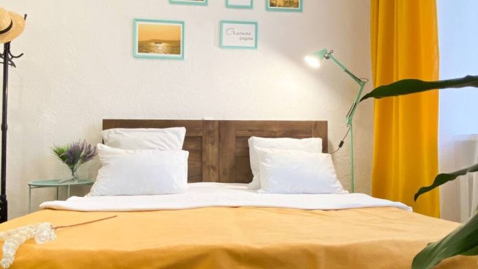 2. Площадь квартиры почти 70 кв м, а количество спальных мест 8, из них 6 раздельных. 4 односпальные кровати (на фото поставили рядом, как 2х спальные), 2 дивана, где легко разместить двоих.