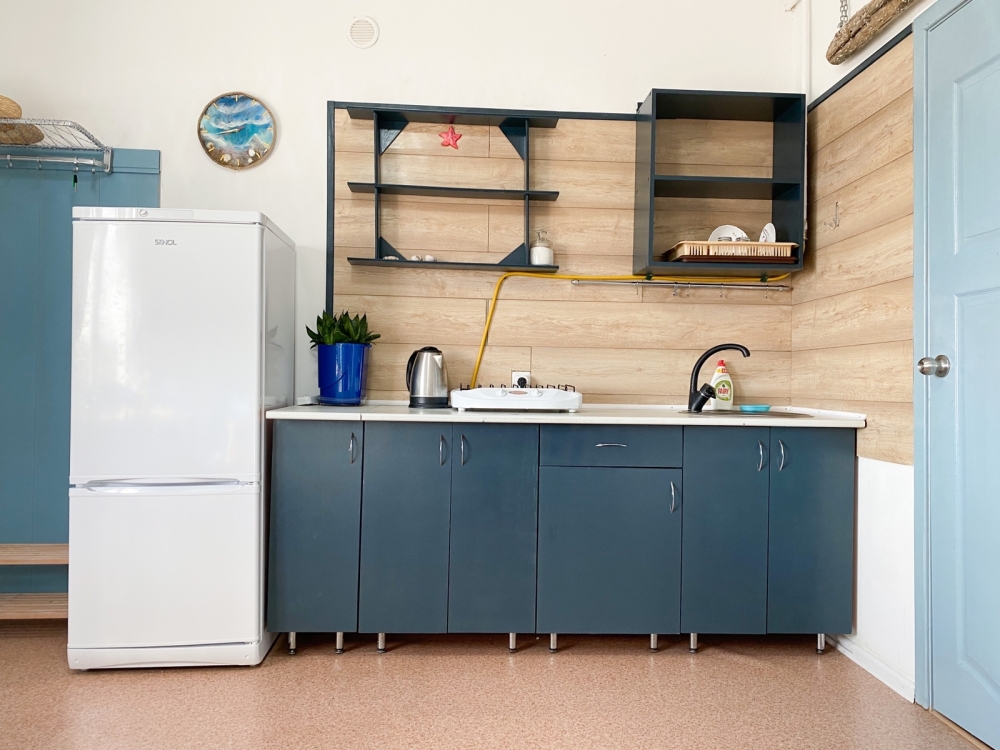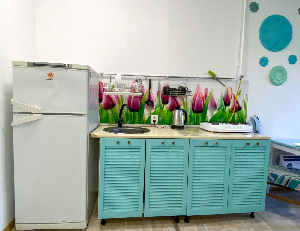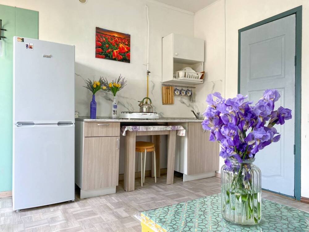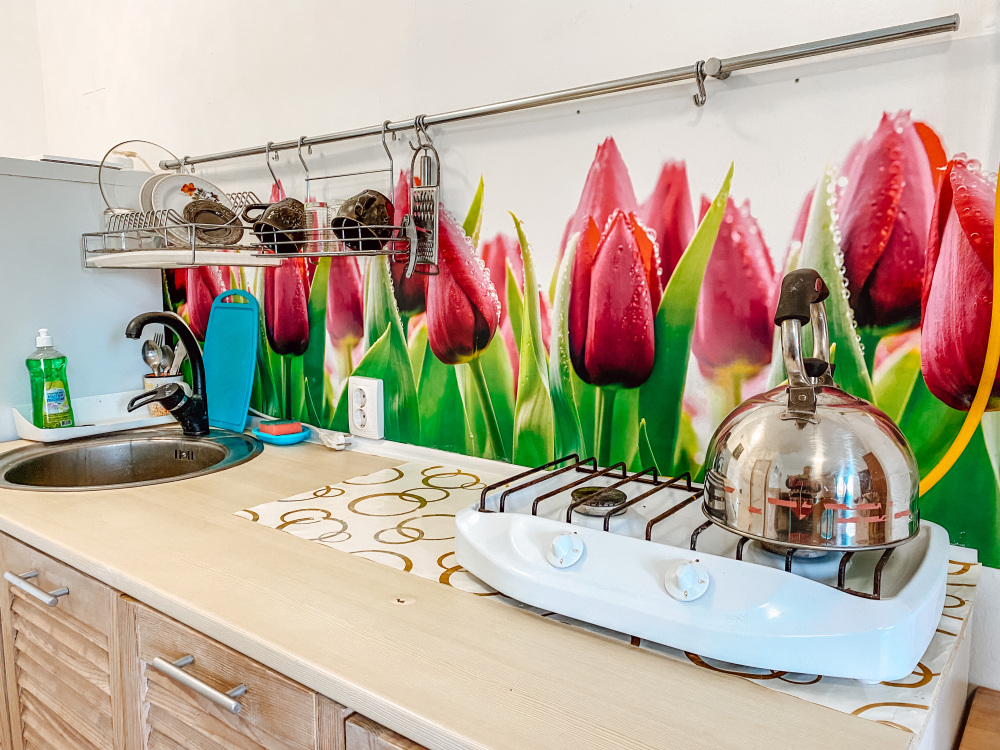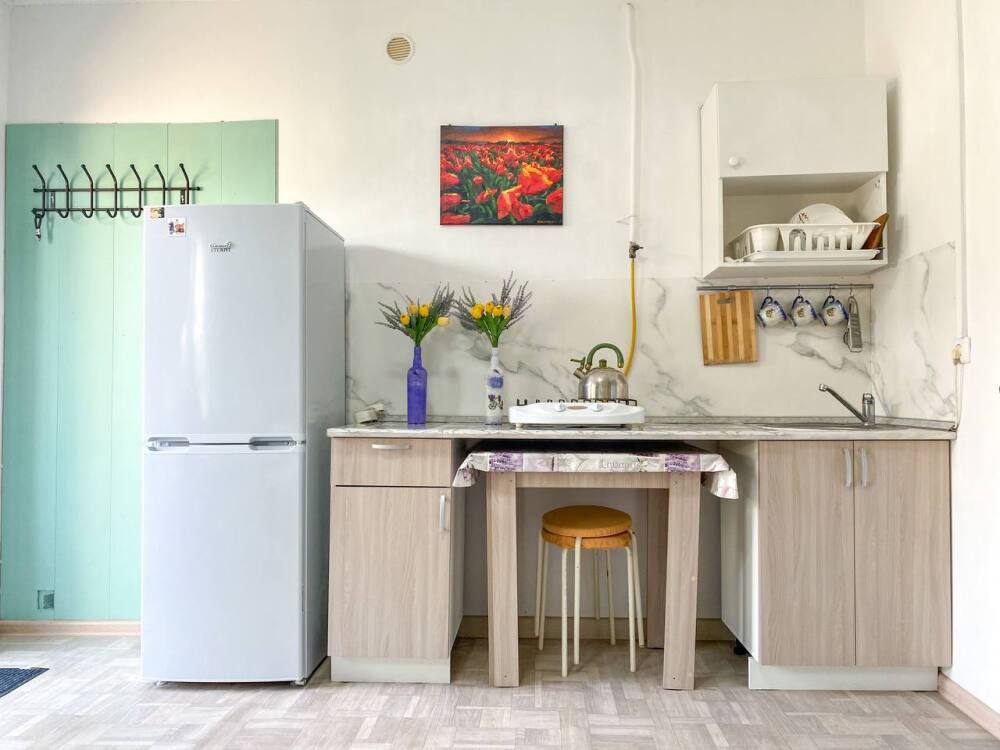 - Собственный кухонный уголок с газовой плиткой, полноразмерным холодильником, посудой и кухонной утварью для ваших кулинарных фантазий