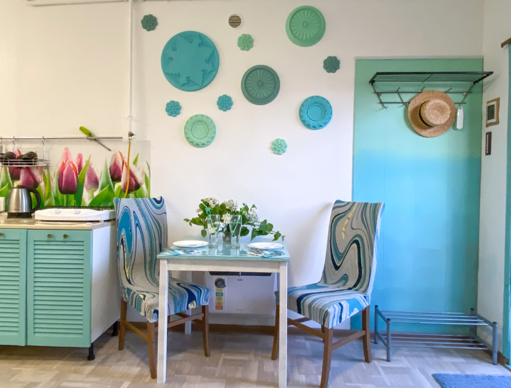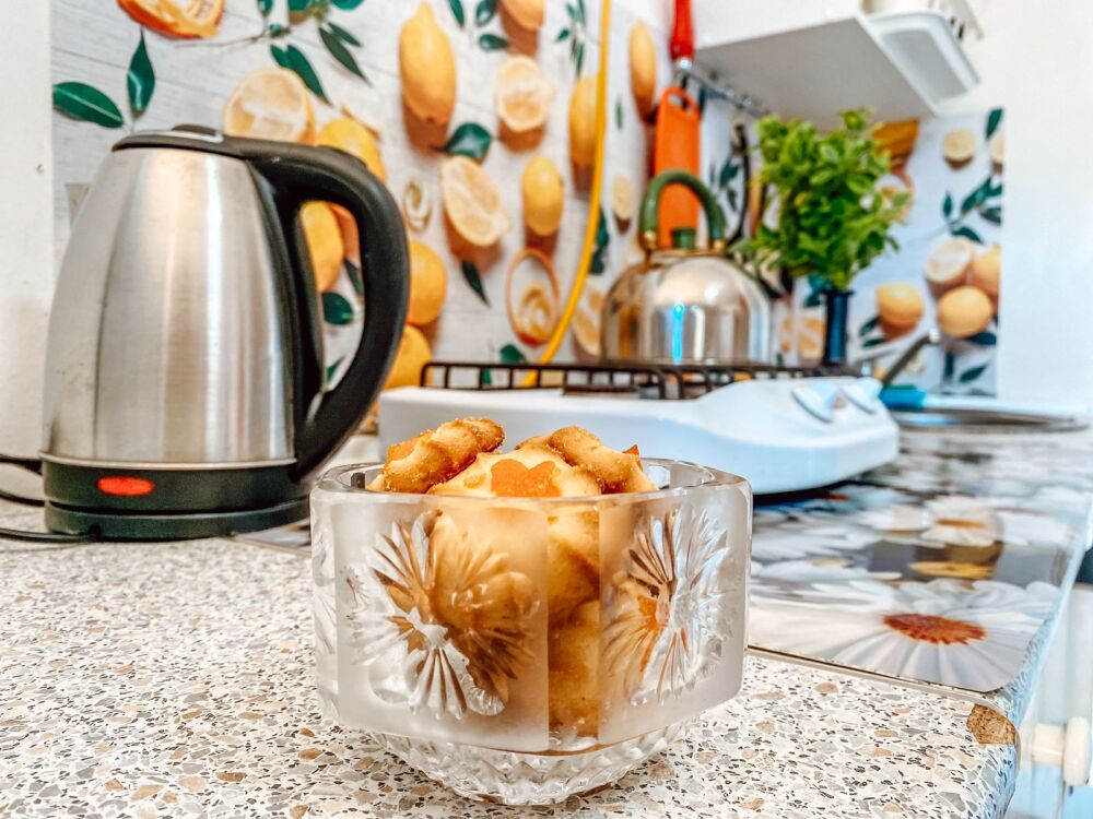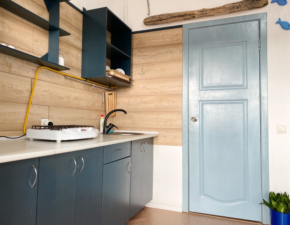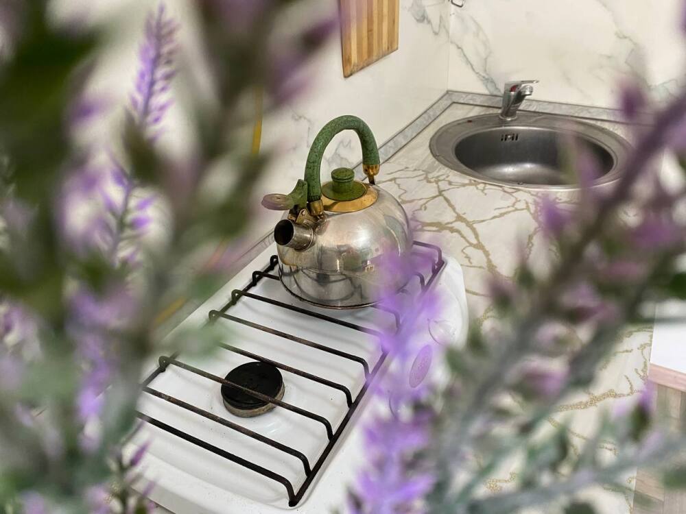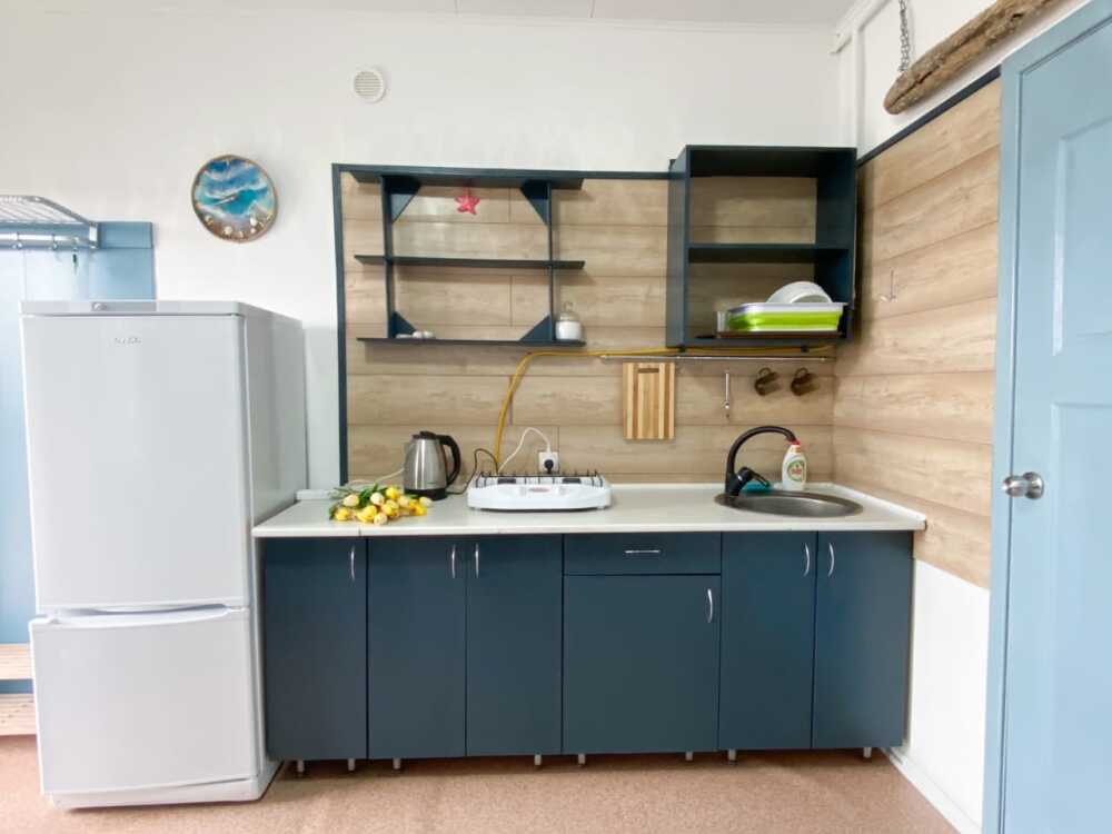 - Собственный кухонный уголок с газовой плиткой, полноразмерным холодильником, посудой и кухонной утварью для ваших кулинарных фантазий