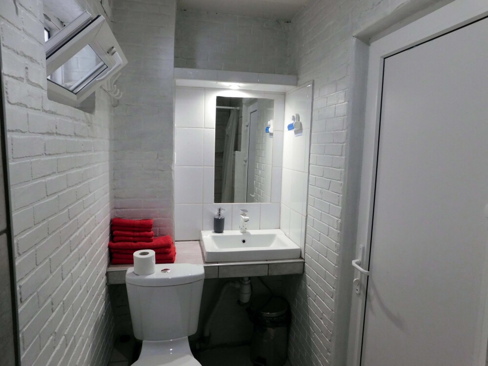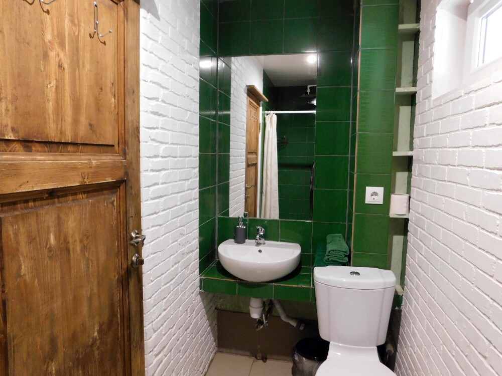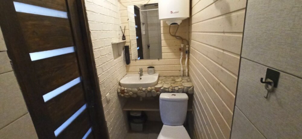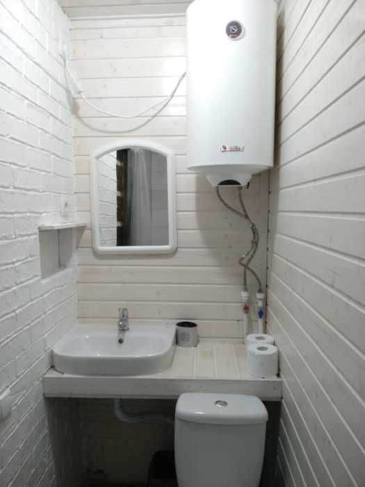 Санузел с унитазом, умывальником, душем; горячая вода (бойлер).