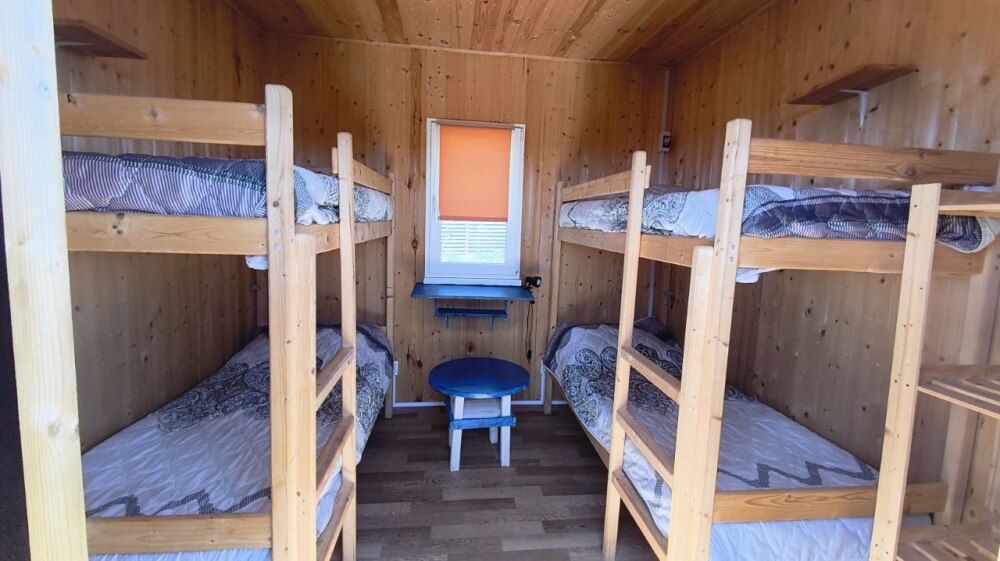 Номер с 4 двухспальными кроватями. У номера отдельный вход, на участке есть зоны для отдыха со столами и стульями, беседка, мангальная зона, гамак. В номере гостям предоставляется новое постельное белье, хорошие матрасы, полотенца. В номере есть место для размещения багажа, полки для вещей. Души с горячей водой и туалеты расположены в отдельностоящем помещении.