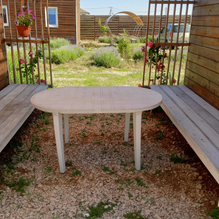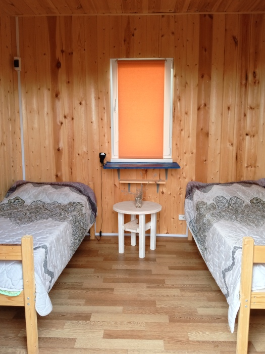 Номер с 2 кроватями. У номера отдельный вход, на участке есть зоны для отдыха со столами и стульями, беседка, мангальная зона, гамак. В номере гостям предоставляется новое постельное белье, хорошие матрасы, полотенца. В номере есть место для размещения багажа, полки для вещей. Души с горячей водой и туалеты расположены на участке. Лаванда на участке хорошо защищает от москитов.