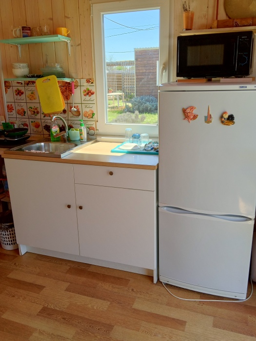 Кухня общая на территории , имеется посуда, плита, холодильник, микроволновка и все необходимое для приготовления пищи.