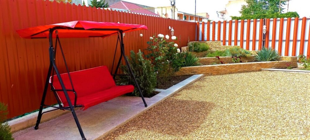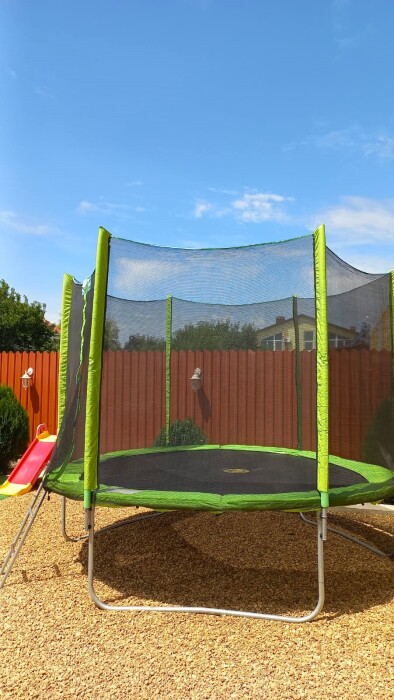 У нас большая благоустроенная территория , качели , фонтаны, озеленение, большой батут для детей, самое главное общая кухня 60 квадратных метров с зоной мангала, удобное место для курения.