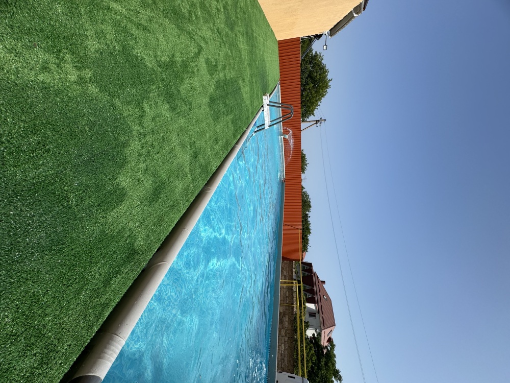 У нас на территории бассейн 10 * 5 м с зоной отдыха и шезлонгами.