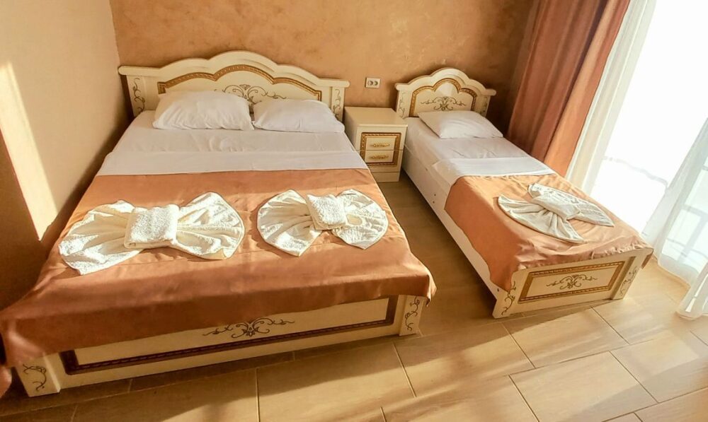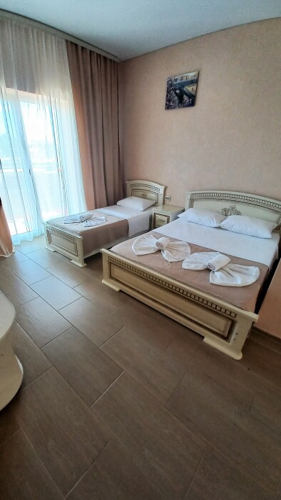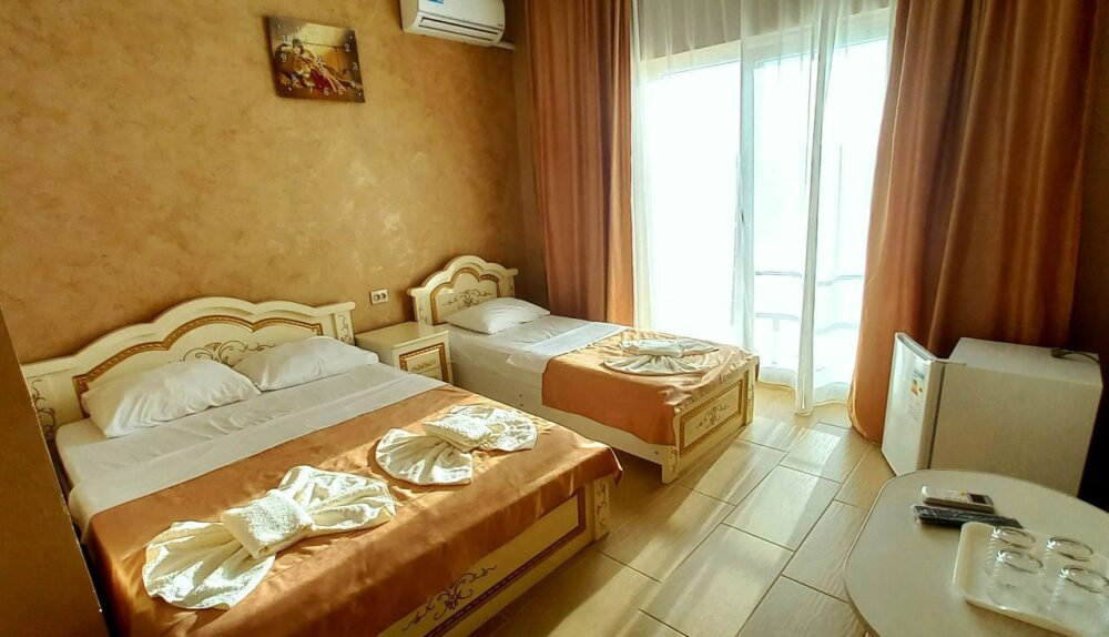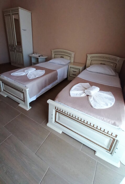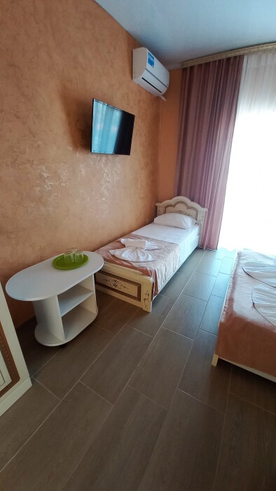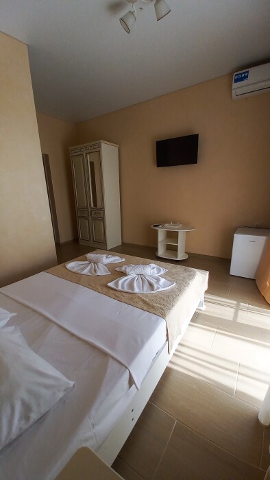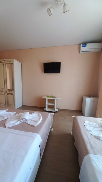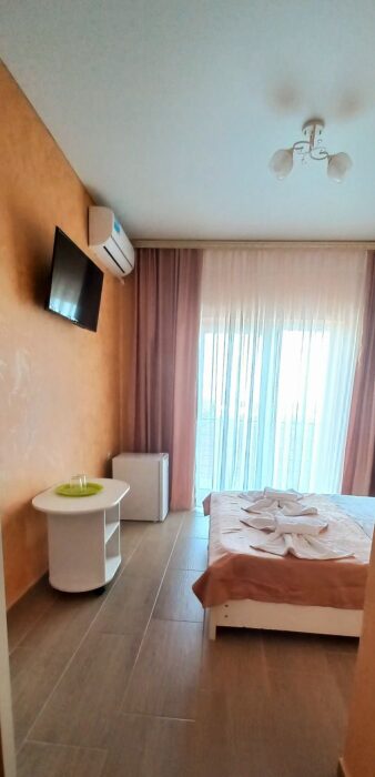 Во всех номерах установлен шкаф для одежды и телевизор с плоским экраном, оборудована собственная ванная комната с феном, полотенцами в 3-размерах на каждого отдыхающего, а так же гигиеническими принадлежностями. В числе удобств холодильник в номере, а для номеров с балконом уличная сушка для белья индивидуальная. Установлены на все окна защитные антимоскитные сетки.