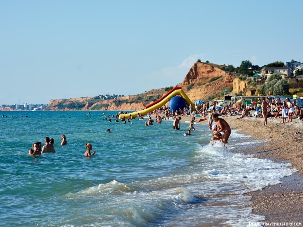 До моря 100 метров. Пляж мелкая галька и песок.