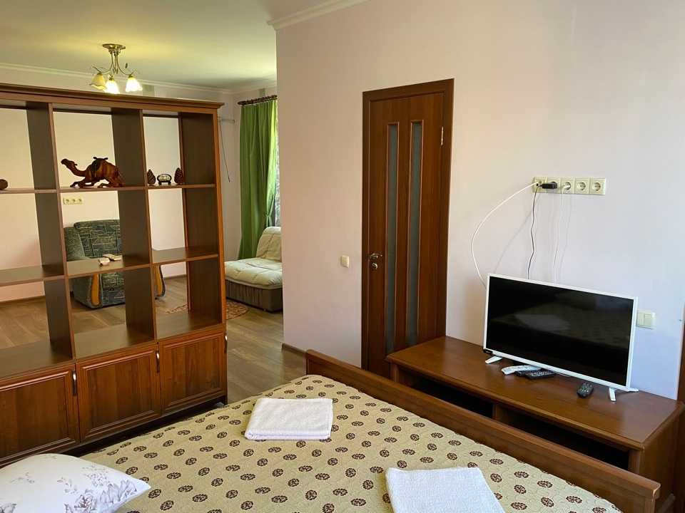 В номерах установлен телевизор с плоским экраном, кондиционер, двухспальная кровать, двухспальный диван, постельное белье и полотенца входят в стоимость проживания.
