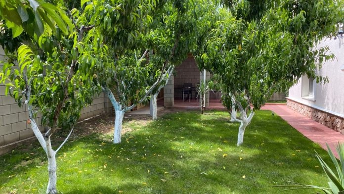 Во дворе уютная барбекю зона со стационарным мангалом, умывальником.