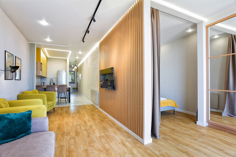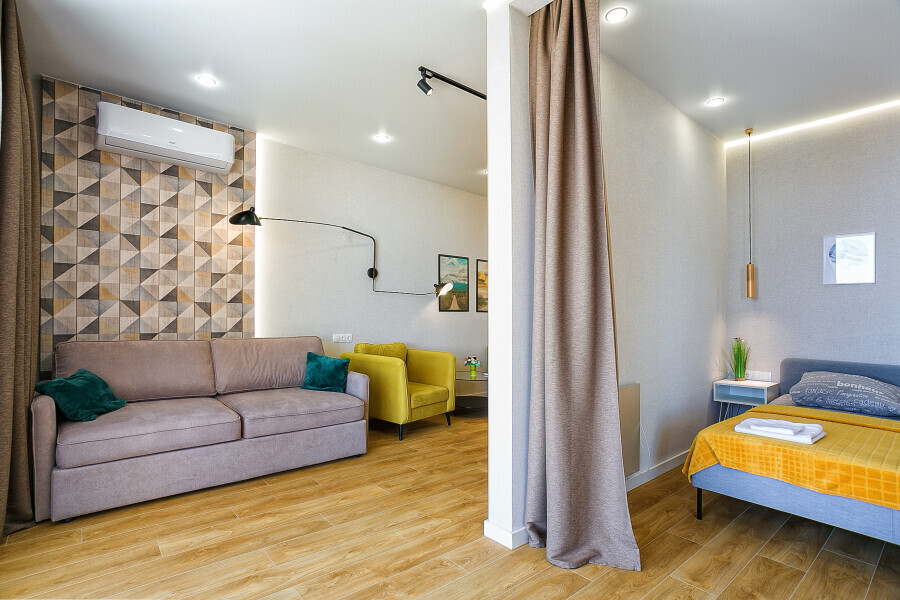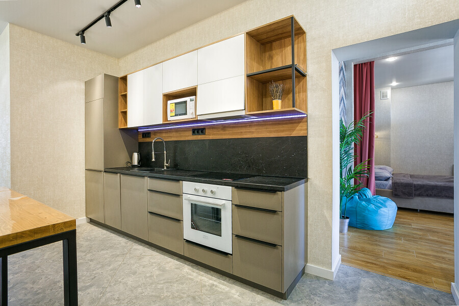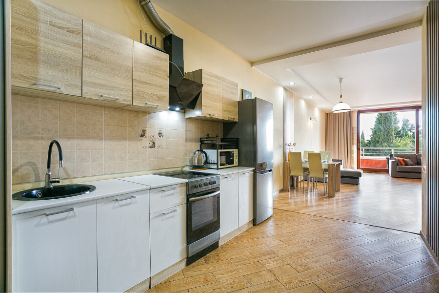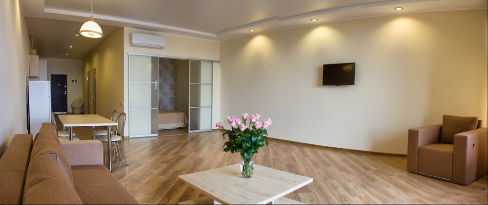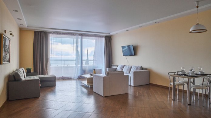 Для проживающих в наших апартаментах занятия в тренажерном зале на территории ЖК предоставляются бесплатно. В 15-20 минутах ходьбы от нашего комплекса находится городской галечный пляж, на пляже за дополнительную плату можно арендовать зонтики и шезлонги.