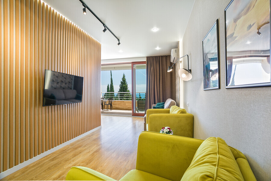Предлагаем Вам для отдыха двухкомнатные видовые апартаменты в ЖК Фамилия в пгт Гурзуф. Апартаменты отлично подойдут как для семейного отдыха, так и для путешественников, любящих спокойный отдых в комфортных условиях.