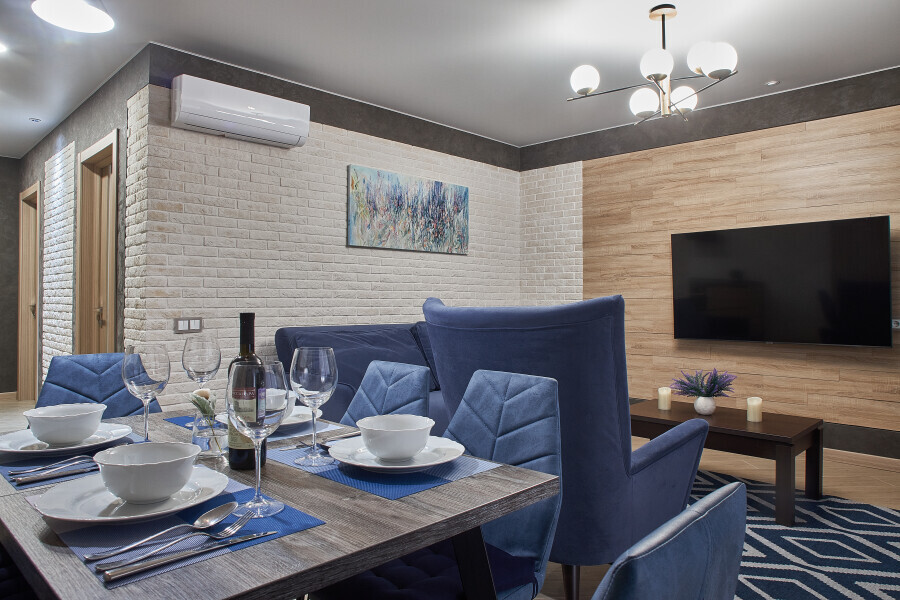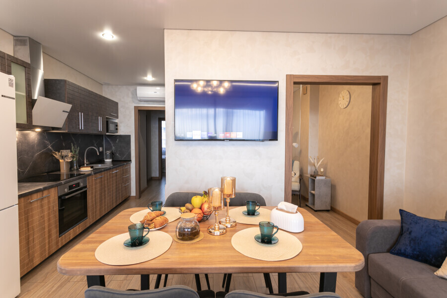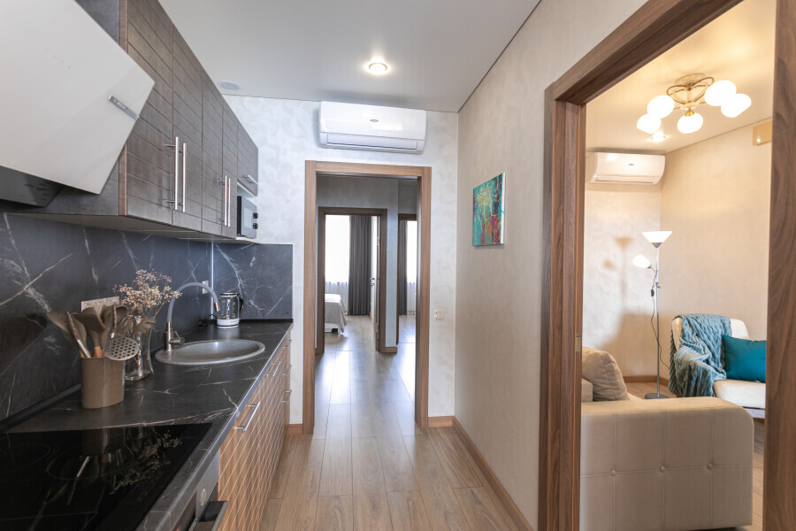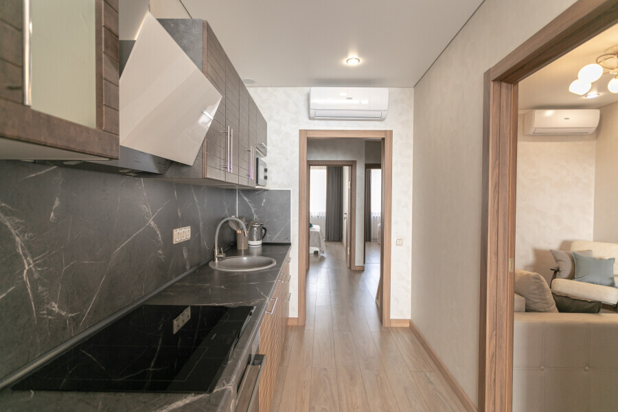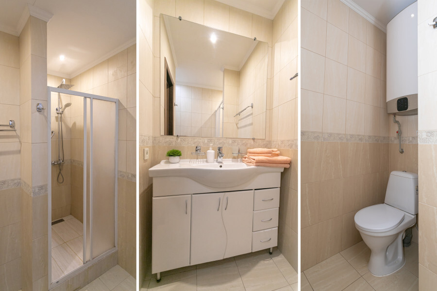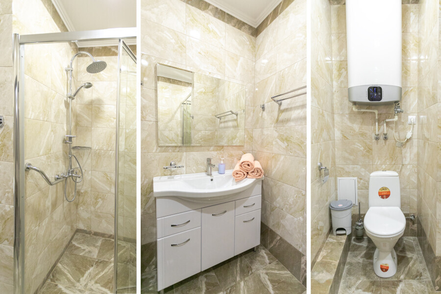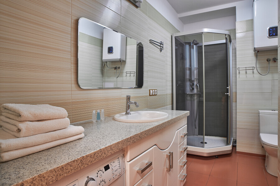 В квартире есть все необходимое для комфортного проживания. В каждой комнате свой отдельный санузел.