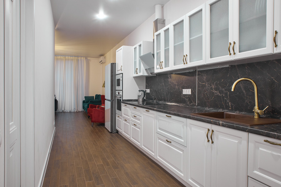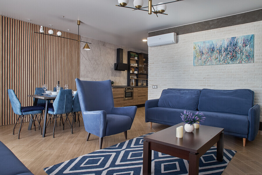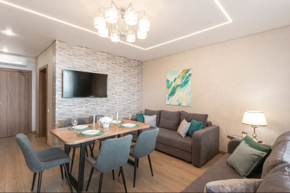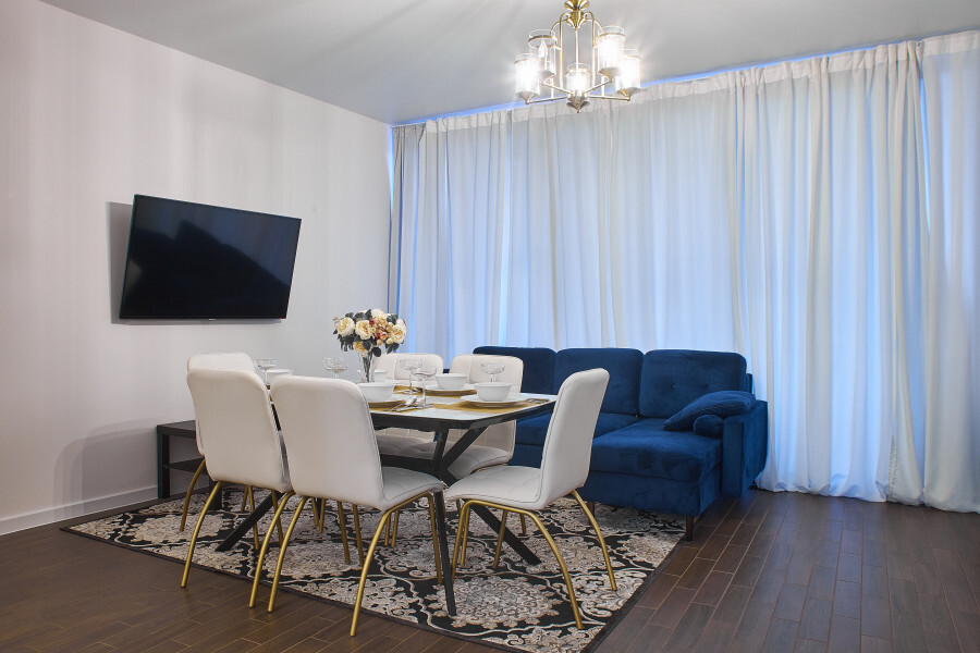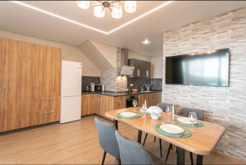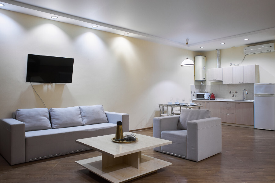 В квартире есть все необходимое для комфортного проживания. В каждой комнате свой отдельный санузел.