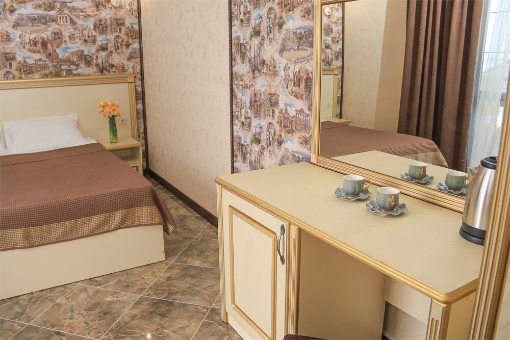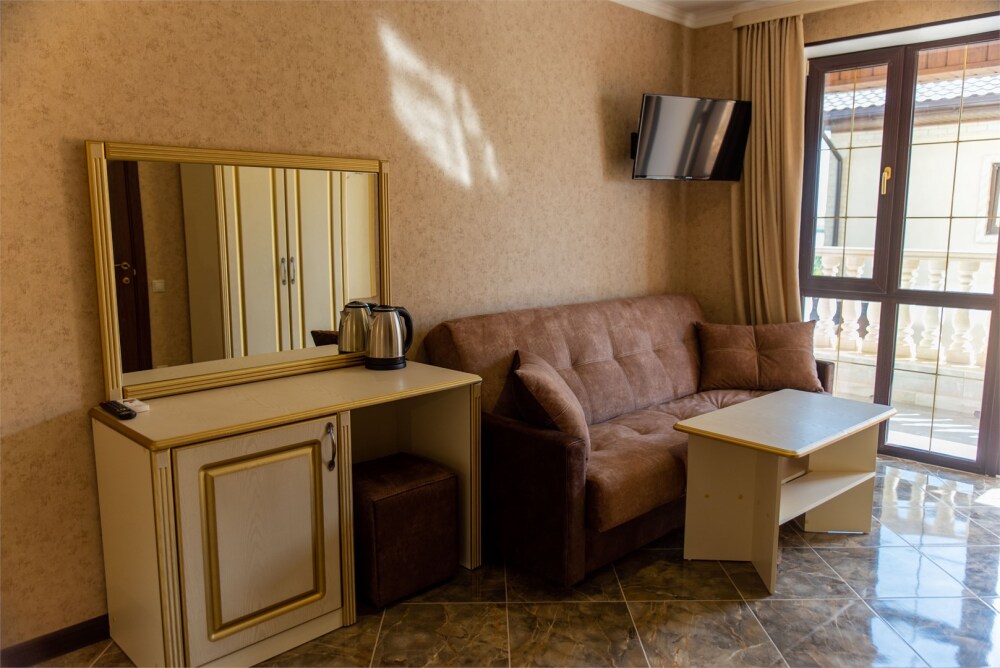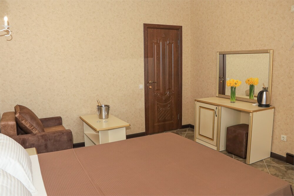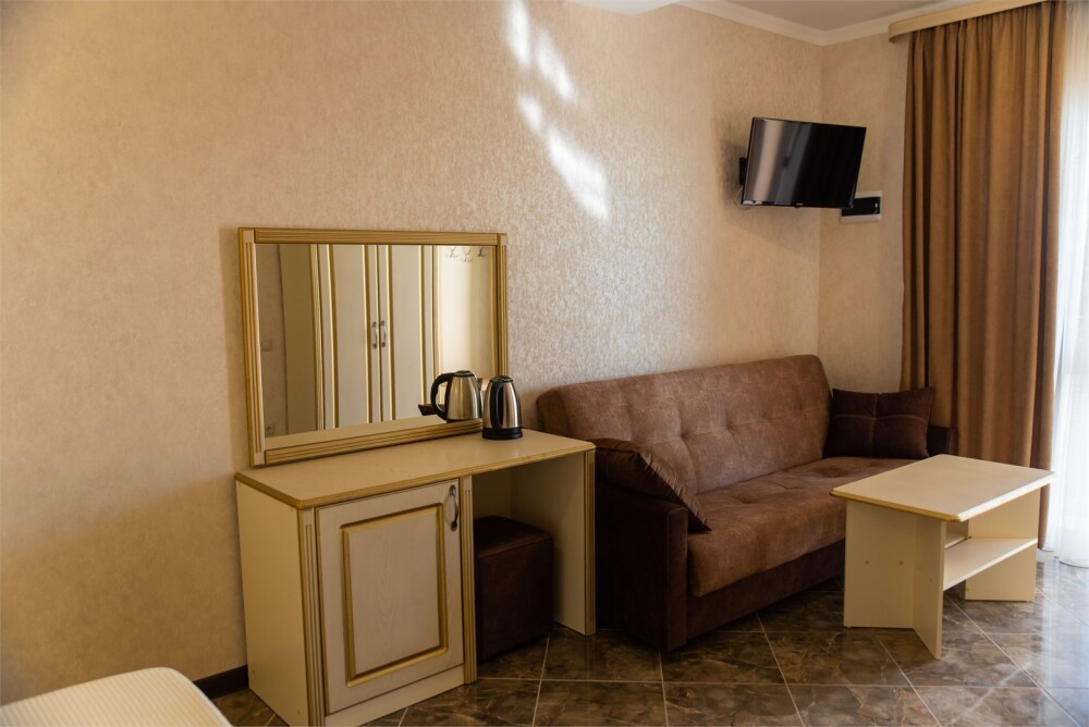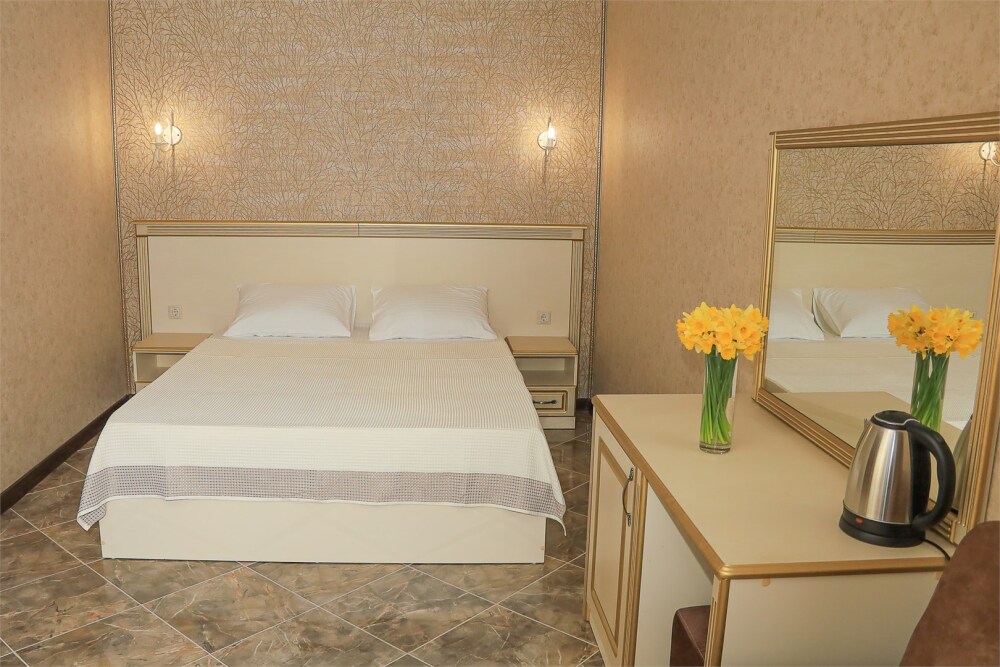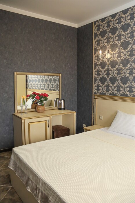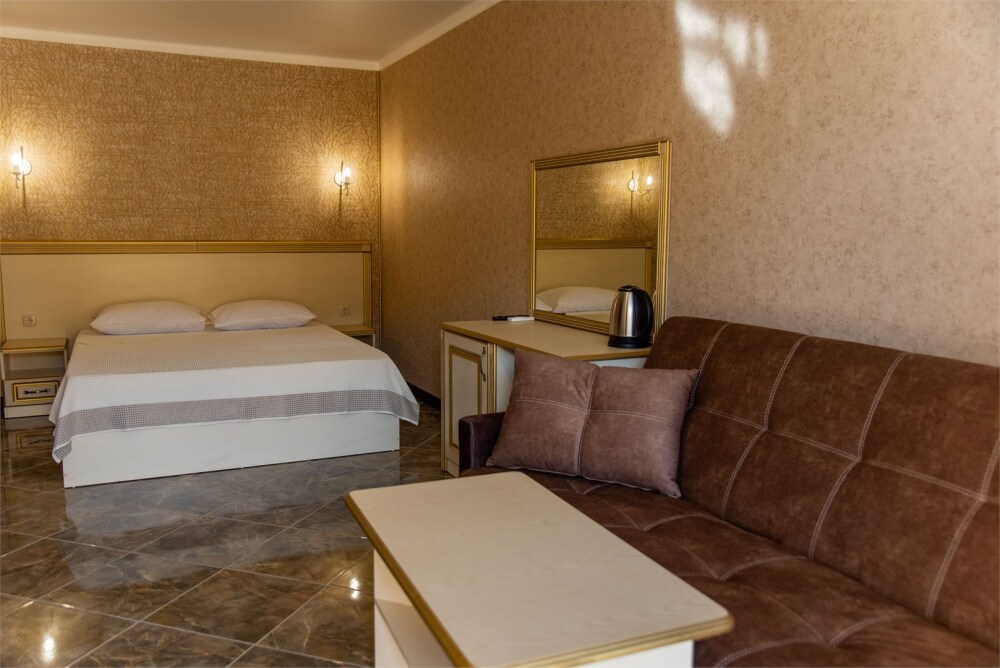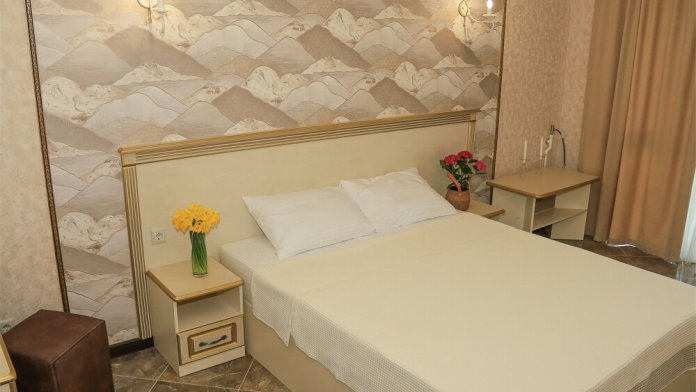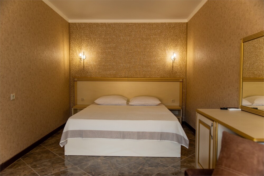 Уютный номер для 1–2 человек, площадью от 20 до 24 м². В комнате: большая кровать, рабочая зона, телевизор, чайник, шкаф. В ванной — душ, фен, туалет, полотенца. Есть кондиционер, Wi-Fi. На этаже — утюг и гладильная доска. Стойка регистрации работает круглосуточно. Уборка — раз в 3 дня, смена белья — раз в 5 дней. Завтрак с 8:00 до 10:00 (дополнительно). В ресторане действует дневное меню. Бесплатно: прачечная, хранение багажа, парковка. Сувениры из Крыма на территории. Дети до 3 лет — бесплатно.