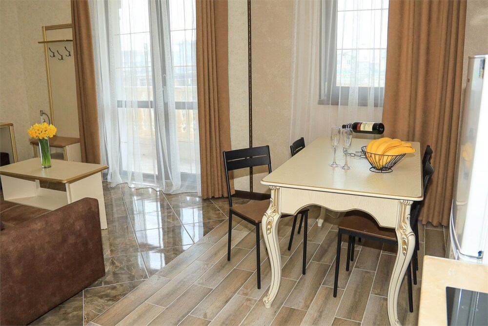 Бутик-отель состоит из 24 номеров разных категорий 2, 3, 4-местного размещения, в каждом номере имеются все удобства: кондиционер, кабельное, smart ТВ, Wi-Fi, мини-холодильник. В ванной комнате: санузел с душевой, фен и набор ванных принадлежностей. В номерах категории семейный и студия оборудованы кухни. Номера категории VIP оборудованы большой кухней, красивой обеденной зоной, а также есть ванная и стиральная машина.