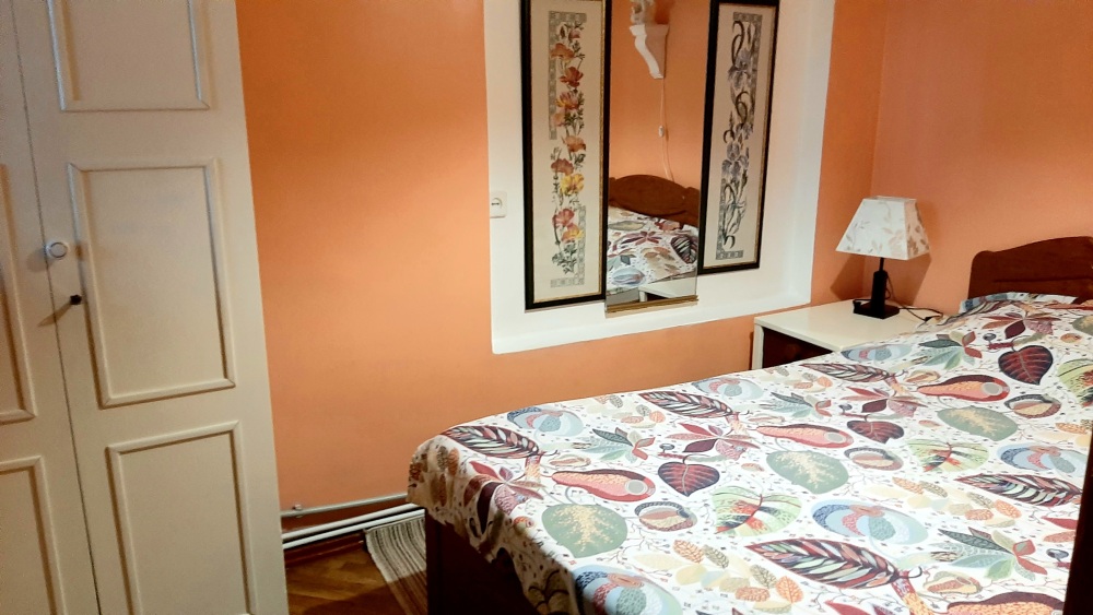 В доме зал с камином,2 спальные комнаты, кухня, санузел совмещенный.