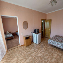 Номера 2,3-местные и отличный вариант для семейного отдыха (на 4-5 гостей). В номерах предоставляется: мебель гостиничного типа, душ, туалет, умывальник, ТВ, холодильник, кондиционер. Смена постели раз в 7 дней.