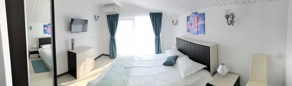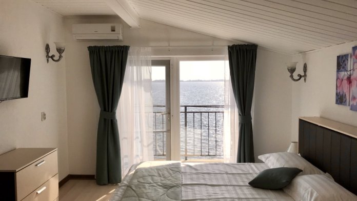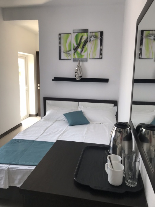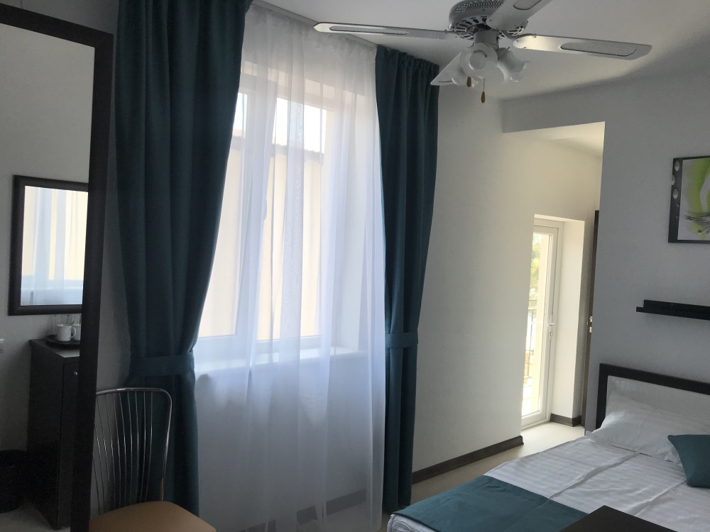 Самый шикарный и большой номер нашего отеля занимает целый этаж с отдельным входом в отдельном здании. Две большие раздельные комнаты, 2 балкона, 2 кондиционера, 2 ТВ с плоским экраном, 2 двуспальные кровати и диван кровать, полотенца, белое белье, холодильник, чайник, с/у.
