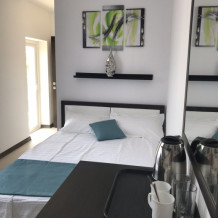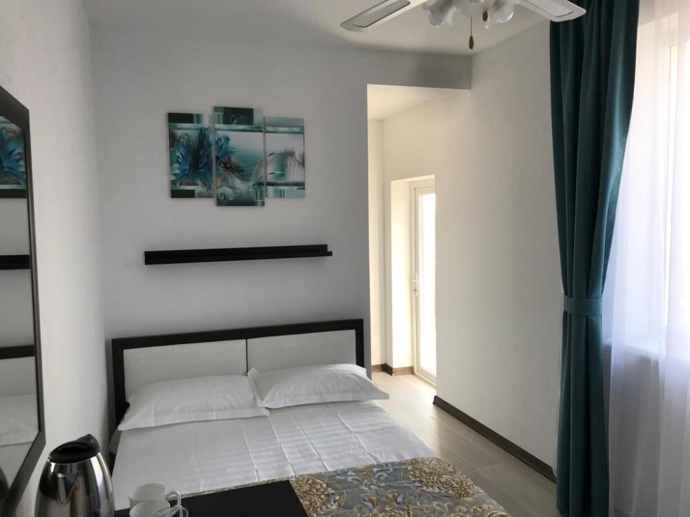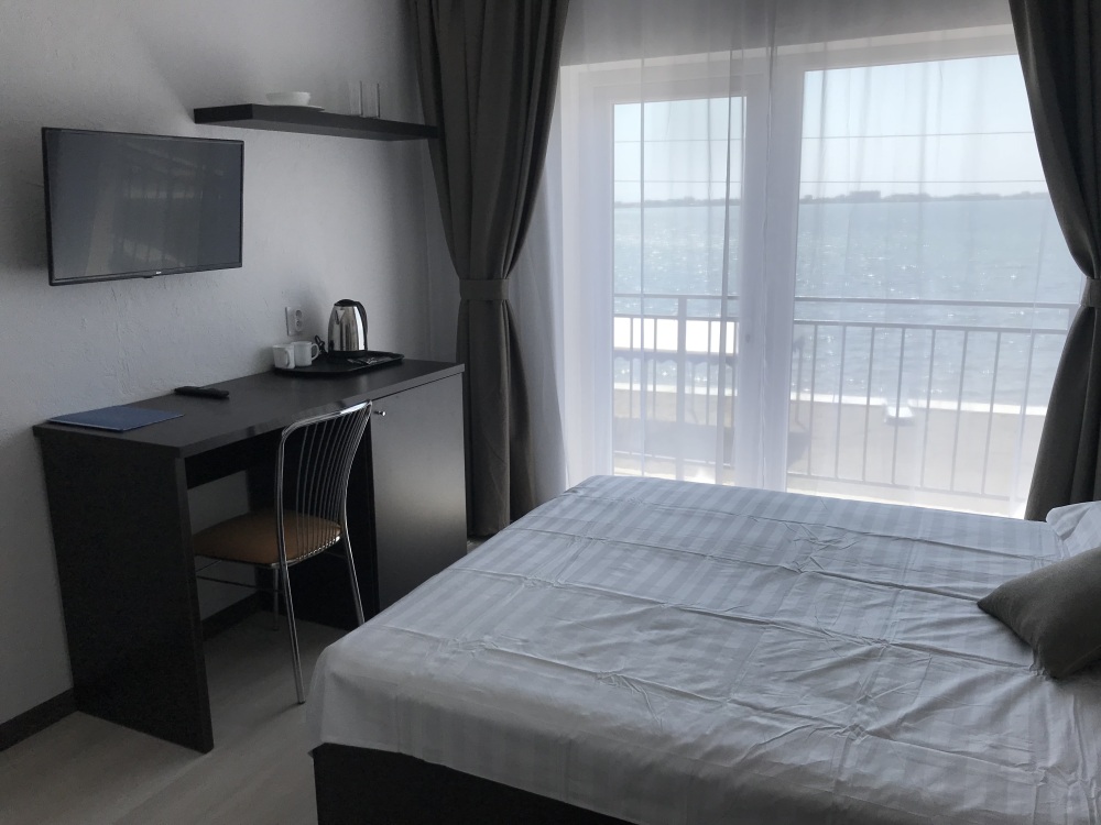 Номер с двуспальной кроватью, балконом, санузлом для двух человек. Имеется холодильник, чайник, кондиционер, белое белье, полотенца, ТВ.