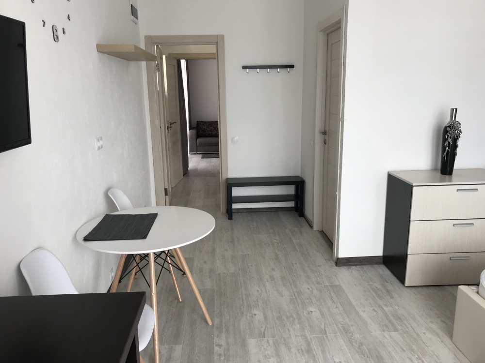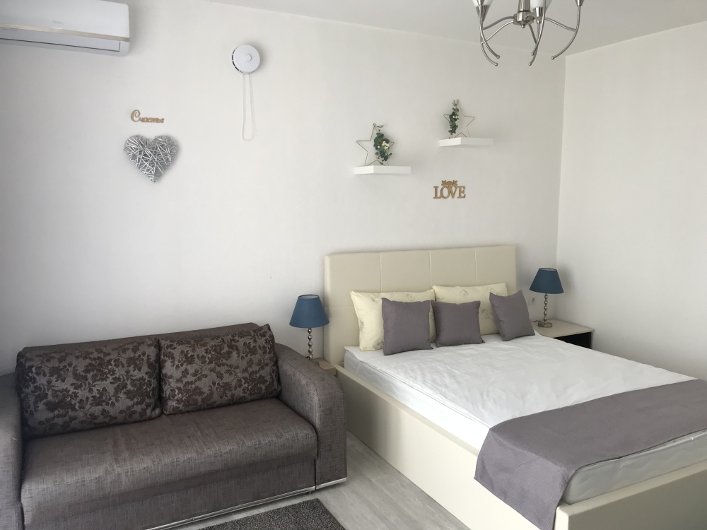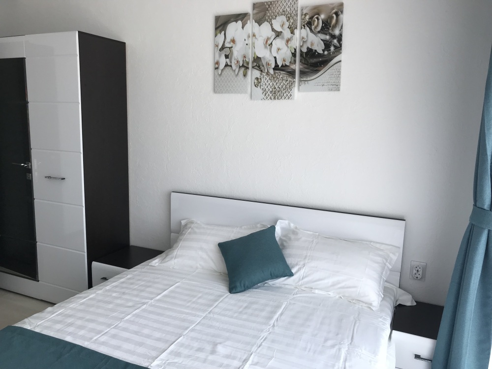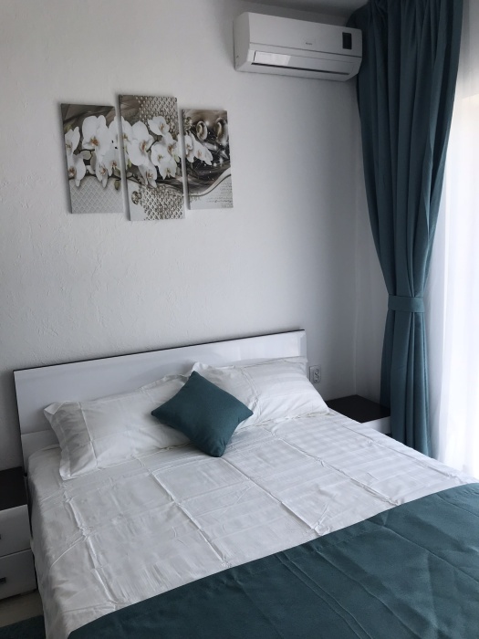 Двухкомнатный стильный люкс с кондиционерами в каждой комнате, ТВ, холодильник, чайник, белое бел е, полотенца, балкон.