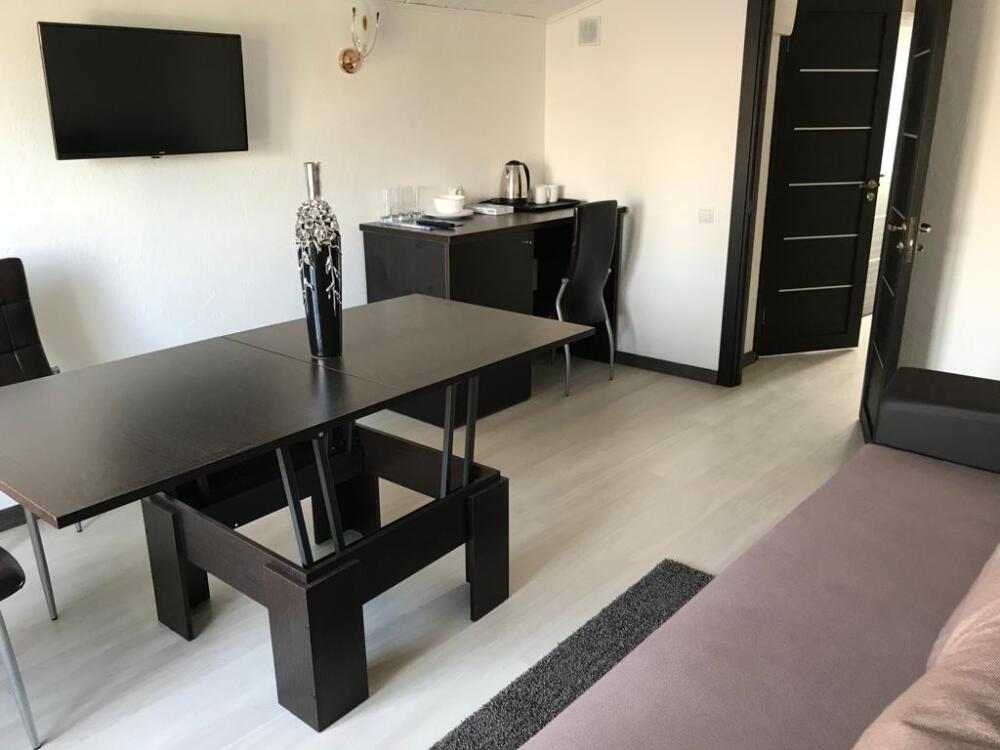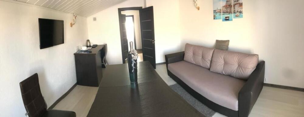 Двухкомнатный номер для 4 гостей(две изолированные комнаты) с двухспальной кроватью и диваном,балконом, кондиционером, электрическим чайником и холодильником, двумя телевизорами с плоским экраном.