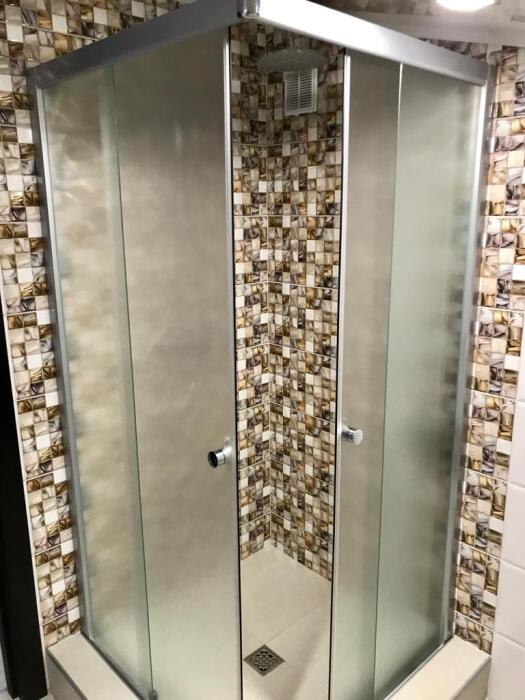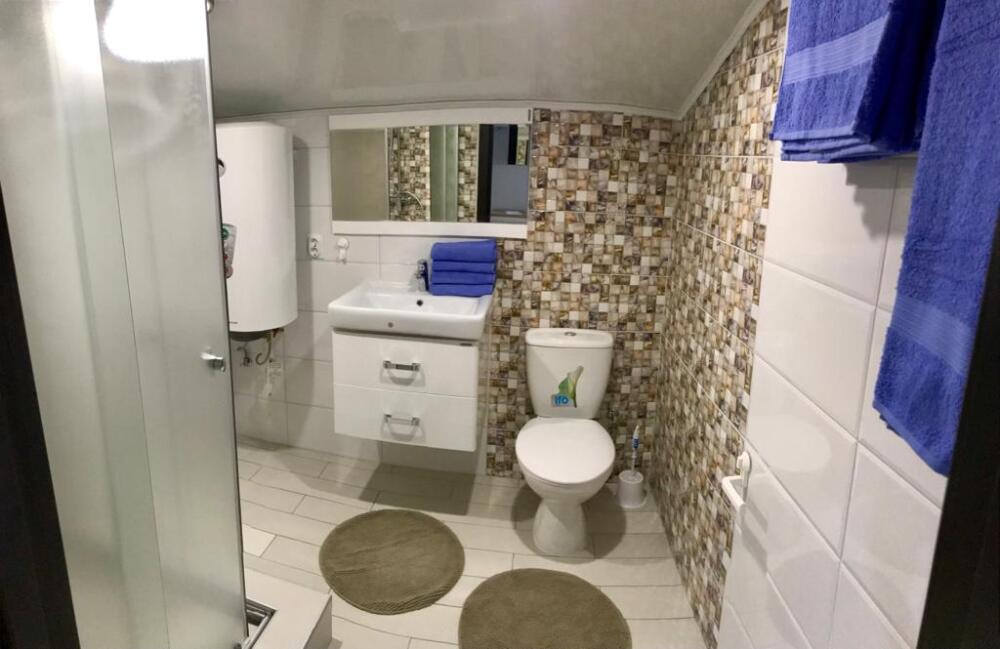 В ванной комнате:туалет, душ,полотенца,туалетная бумага.
