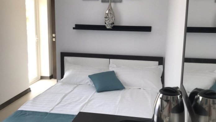 Двухкомнатный номер для 4 гостей (две изолированные комнаты) с двухспальной кроватью в полноценной спальне и двумя односпальными кроватями - в другой комнате. Номер с балконом, кондиционером, электрическим чайником и холодильником, телевизором с плоским экраном.